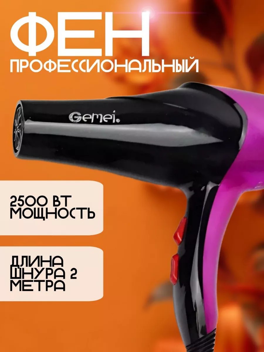 Функциональный и удобный фен GEMEI отличается красивым дизайном и доступной ценой с большим набором функций. Отличается высоким качеством и надежностью, бережно сушит волосы. Это мощный и универсальный инструмент, с помощью которого можно не только высушить, но и аккуратно уложить ваши волосы. Благодаря мощности в 2600 Вт, выходящий воздух нагревается практически мгновенно. Вы можете регулировать скорость потока воздуха и температуру нагрева. Отключение модели при перегреве позволит продлить срок его службы и обеспечит его наиболее безопасную эксплуатацию.