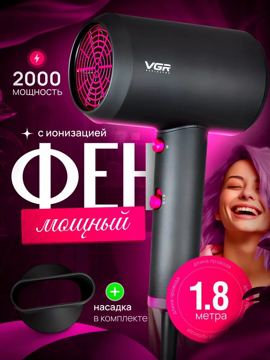Фен VGR v-400 с технологией Double Overheating Protection. Ультракомпактный ипростой в использовании. Он будет под рукой в любое время и в любом месте.Высокоэффективный и компактный фен станет вашим идеальным спутником и поможет выглядеть потрясающе в любой поездке. Откройте для себя быструю и эффективную сушку волос. Этот фен с двумя настройками регулировки скорости воздуха и температуры, компактным размерам и со складным корпусом. Фен станет вашим идеальным спутником в любом путешествии. Мощность 1600-2000 Вт для быстрой и эффективной сушки волос. Фен работает в двух системах напряжения для эффективного использования. Настройка процесса: выбор скорости, выбор температуры для комфортного использования. Насадка-концентратор для точной и тщательной сушки и укладки волос.
