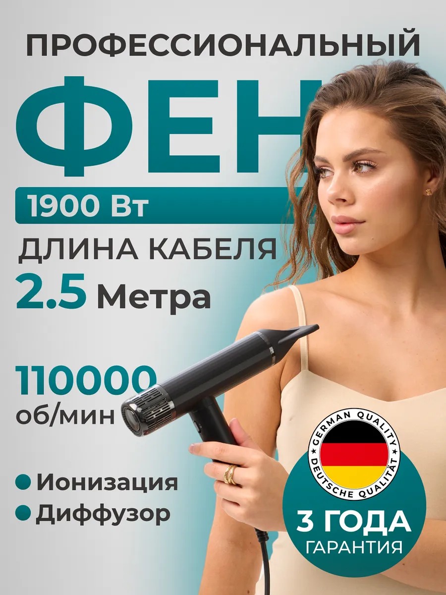 Мощный и надежный фен для волос профессиональный мощный с ионизацией обеспечивает безупречные результаты, сохраняя здоровье и красоту вашей прически. С защитой от перегрузки и высококачественным двигателем мощностью 1600-1900 Вт, этот фен идеально подходит для любого типа волос.