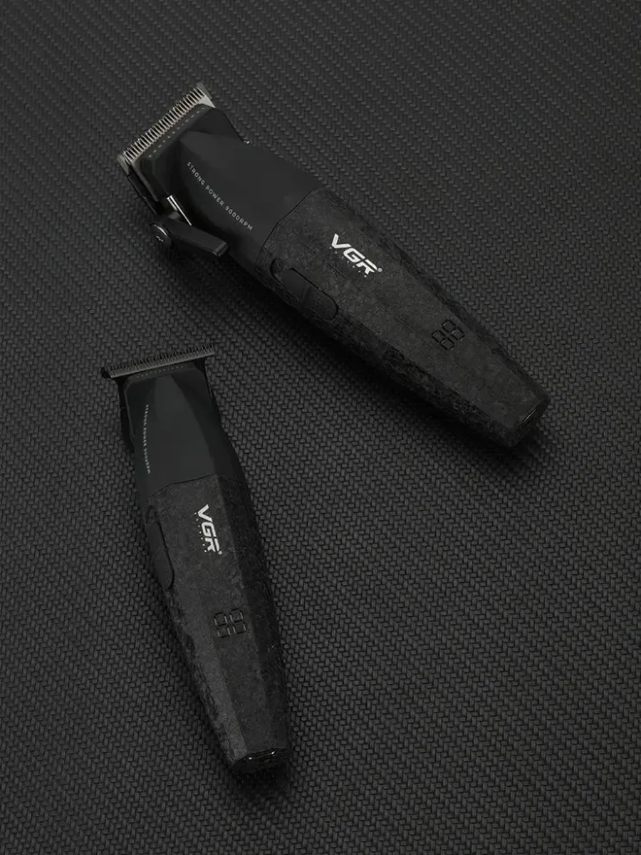 The VGR V-640 is a professional hair, beard, and mustache grooming kit that combines style, power, and functionality. This kit includes a hair clipper and trimmer. Thanks to its advanced technology and ergonomic design, the VGR V-640 is an indispensable tool for both professional barbers and home users. The clipper features a rotary motor with an incredible speed of up to 9000 rpm, easily handling even the thickest hair. The ceramic blade ensures a perfectly even cut and maintains its sharpness for a long time. The clipper can be used with either corded or plugged in, and its capacious 2500 mAh battery provides up to 250 minutes of cordless runtime after just 3 hours of charging. The hair clipper comes with six attachment combs (1.5 mm, 3 mm, 4.5 mm, 6 mm, 9 mm, and 12 mm), and the adjustment lever allows you to adjust the cutting length from 0.5 to 12 mm. An LED display keeps you informed of the current battery level. The trimmer is ideal for detailed work, such as edging, beard shaping, or moustache trimming. Three attachment combs (1.5 mm, 3 mm, and 4.5 mm) are included to help you achieve the perfect result. Its ceramic blade works with the same precision and durability as a hair clipper. The trimmer is equipped with a 2000 mAh battery, which provides up to 240 minutes of cordless use after charging in just 2.5 hours. Both devices support USB charging via a Type-C cable, making them convenient to use even on the go. The compact size of the devices makes them easy to store and transport. The VGR V-640 set isn't just a haircut tool; it's your personal assistant for creating a stylish look. High power, versatile length settings, and quiet operation make this kit the ideal choice for those who value quality and comfort. This hair, beard, and mustache set is the perfect gift for any man, husband, friend, brother, or father for any occasion.