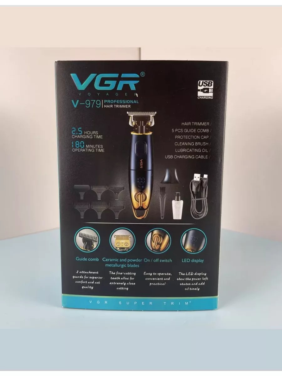 The VGR V-979 hair, beard, and mustache trimmer features a powerful rotary motor with increased torque and professional stainless steel blades. These blades are hard and durable, allowing the trimmer to handle even the thickest and coarsest hair. This professional trimmer is equipped with an innovative built-in 1400 mAh Li-Ion battery. You can trim both corded and corded. Ideal for barbershops or home use, the LED display shows the battery level. Five attachments (1/2/3/4/5 mm) allow you to adjust the desired length. And the unique design will highlight your individuality. It makes an ideal gift for Valentine's Day, New Year's, or a birthday.