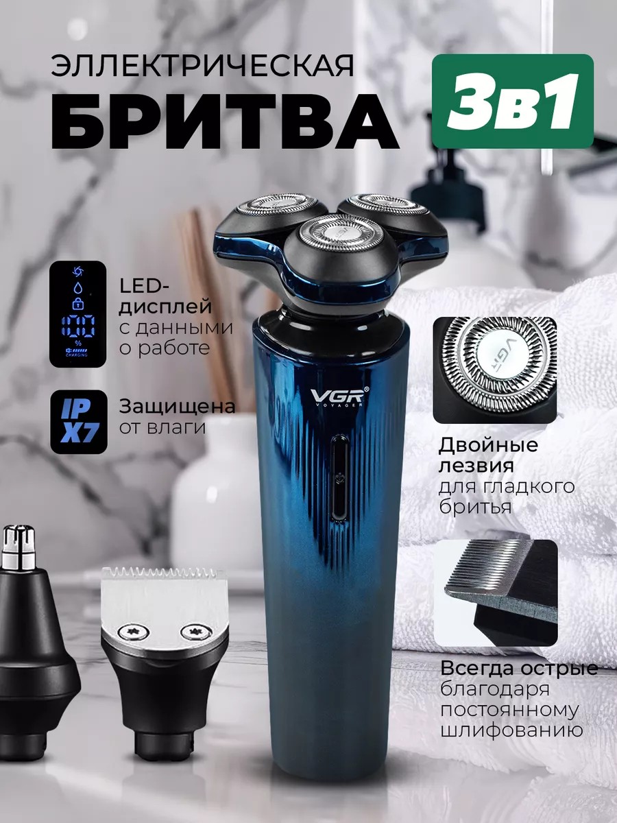 VGR Электробритва мужская для лица, триммер для бороды и усов
