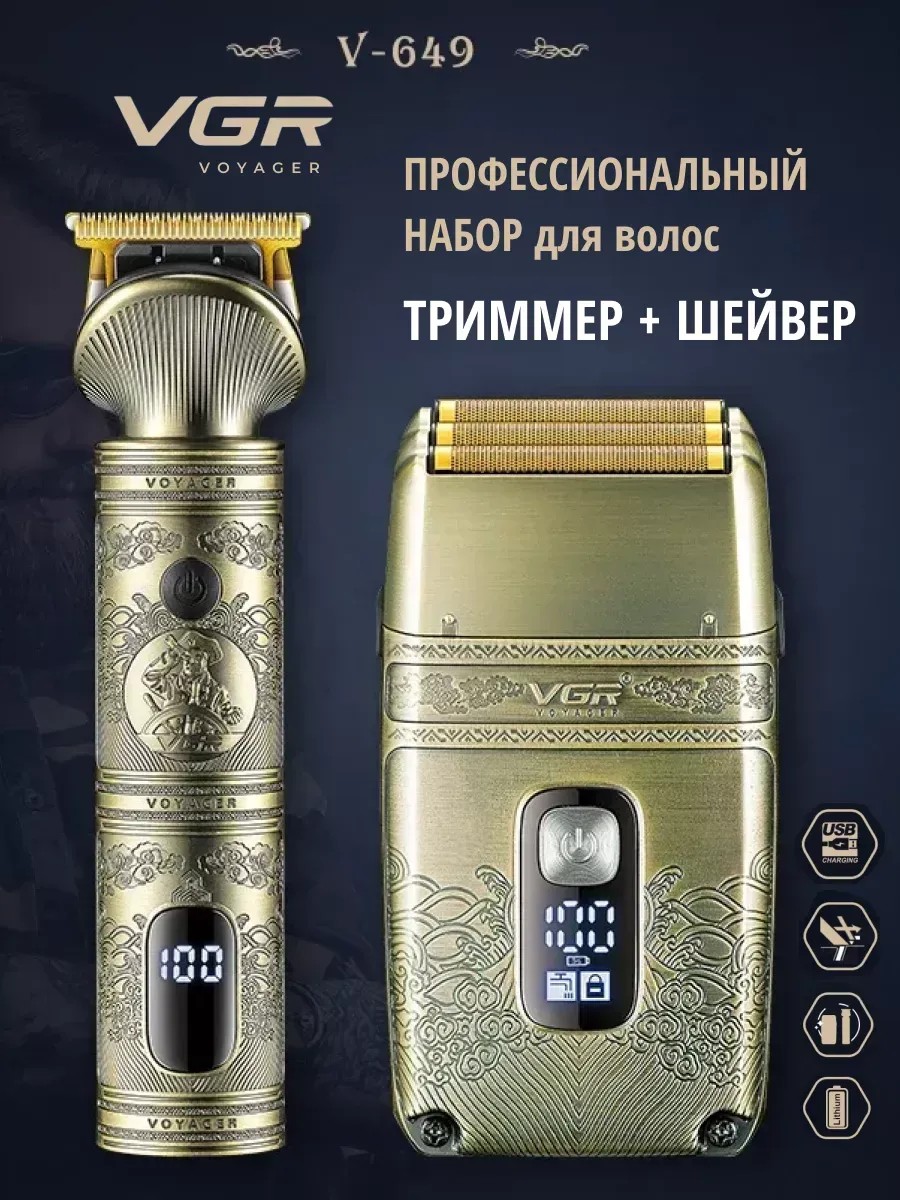 VGR Набор мужской 2 в 1, машинка для стрижки + шейвер