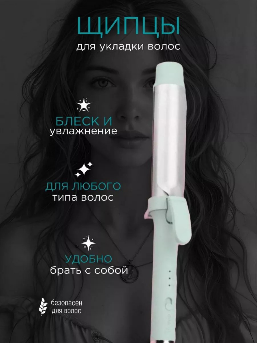 The P-200G hair curling iron has a power of 73 W and a cable length of 1.8 m. The set also includes a hair oil and two plastic clips for securing curls. The iron features adjustable temperatures of 210, 185, and 165 degrees Celsius. It also has three power settings. The iron is 30 cm long and features a negative ion function: 30 million negative ions help smooth hair. For ease of use, a stand is installed at the bottom of the iron, allowing you to place it on a table to prevent it from touching surfaces. The cable swivels 360 degrees.