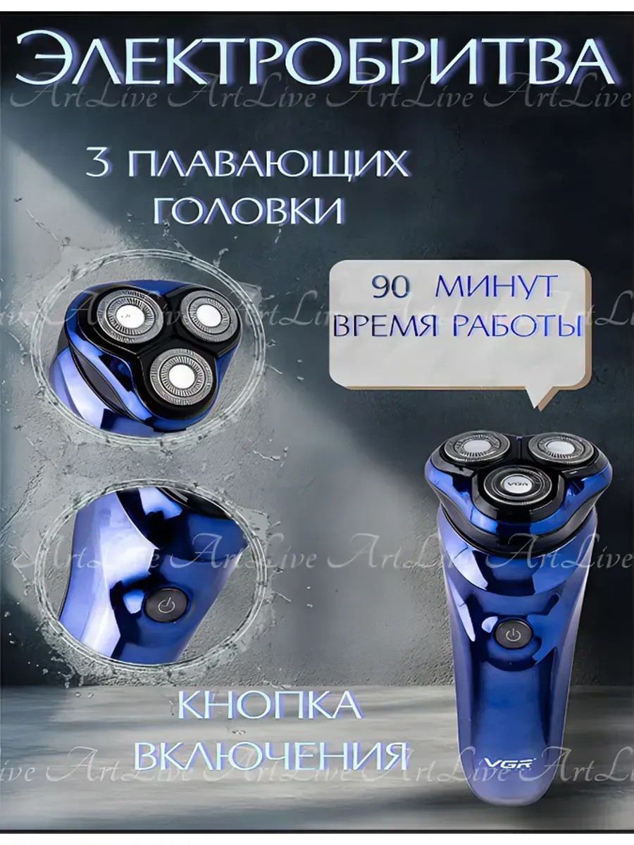 Электробритва с триммером V.G.R. Professional — это универсальный инструмент для мужчин, которые ценят чистое и комфортное бритье. Модель оснащена тремя бреющими поверхностями и двумя скоростями, что позволяет добиться идеального результата как при сухом, так и при влажном бритье. Влагозащитный корпус и LCD-дисплей делают ее удобной для использования в душе или ванной. Благодаря литий-ионному аккумулятору, обеспечивающему до 90 минут работы от одной зарядки, вы можете бриться в любом месте, не беспокоясь о доступе к розетке. Индикаторы зарядки, дорожной блокировки и необходимости очистки помогут вам всегда быть в курсе состояния бритвы. V.G.R. — это гарантия профессионального бритья в домашних условиях, что делает ее отличным подарком для любого мужчины.