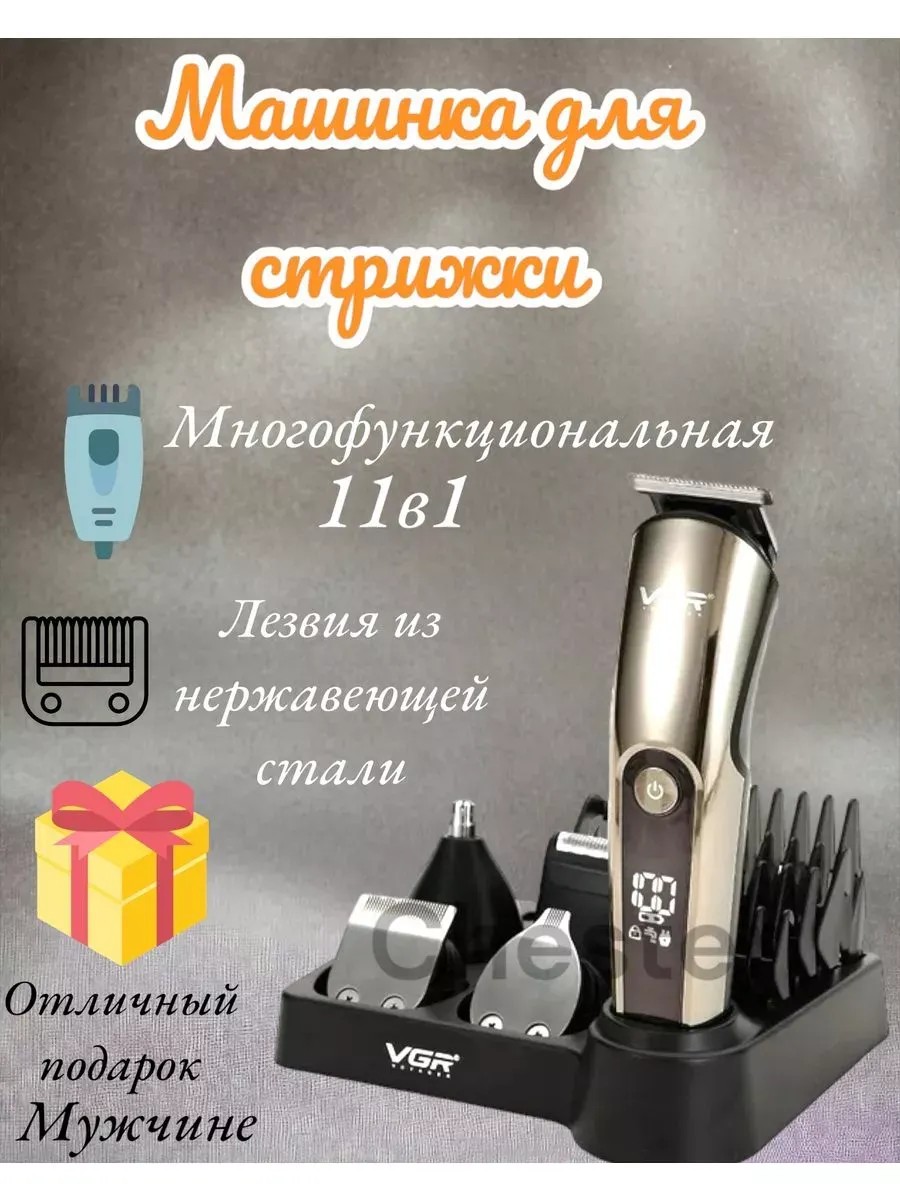 Триммер для стрижки волос и бороды (машинка для стрижки волос) VGR - это эффективное устройство для стрижки и подравнивания волос. Он оснащен лезвиями из нержавеющей стали, которые обеспечивают ровный и аккуратный срез волос без риска порезов или раздражения кожи. А также включает в себя 11 сменных насадок таких как, триммер для носа и ушей, триммер для бороды и усов, а также окантовки, бритвенная насадка-шейвер, триммер для бровей и 4 сменных насадки-гребня для регулировки длины среза.Одной из главных особенностей этого триммера является его беспроводная функция работы. С помощью встроенного аккумулятора, вы можете использовать его в течение 120 минут без необходимости постоянного подключения к электрической розетке. Это делает его идеальным инструментом для путешествий или использования вне дома.Машинка для стрижки имеет 4 сменных насадки и позволяют вам выбирать между различными длинами стрижки и стилей. Независимо от того, хотите ли вы короткую стрижку или оставить некоторую длину волос, эти насадки обеспечат вам нужный результат.Стильный и эргономичный дизайн мужского триммера делает его удобным в использовании и легким в уходе.Триммер мужской беспроводной VGR V-107 со временем работы 120 минут, лезвиями из нержавеющей стали и 11 сменными насадками - это надежный и многофункциональный инструмент, который поможет вам создать профессиональную стрижку и поддерживать аккуратный образ.Является отличным подарком для мужчин, которые ценят качество и продуманный дизайн.