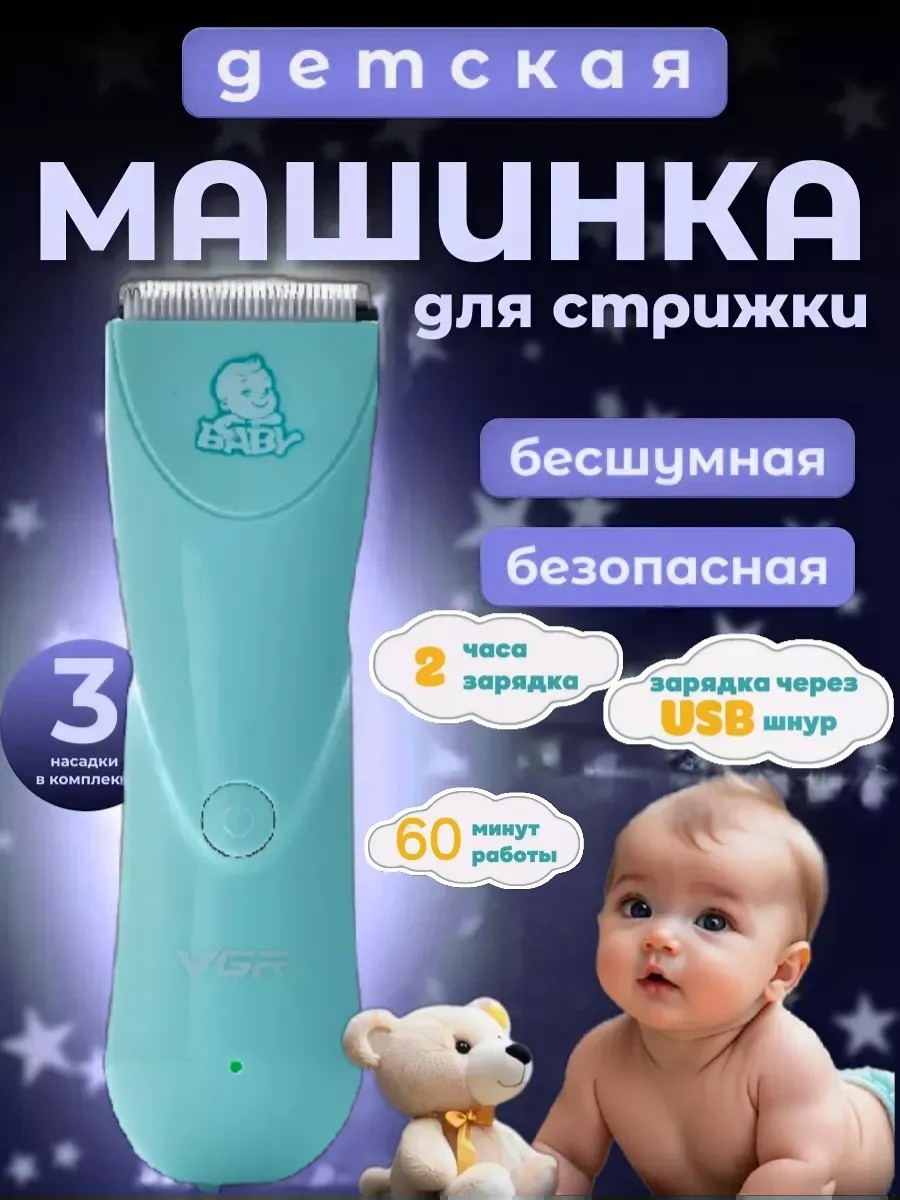 Машинка для стрижки волос VGR V-150 - машинка для стрижки волос у детей в домашних условиях. Детская машинка для стрики - беспроводная, тихая, надежная.VGR V-150 с пониженным уровнем шума и насадками для аккуратной и бережной стрижки детей с самых малых лет.Время работы от аккумулятора при полном заряде - до 60 минут. Машинка подходит как для детей, так и для взрослых. Смоделировать прическу можно при помощи входящих в комплект двусторонних дополнительных сменных насадок для определения длины стрижки. На передней части корпуса расположен индикатор заряда аккумулятора. Прибор оборудован острыми ножами из нержавеющей стали, которые отличаются высокой прочностью и долговечностью.