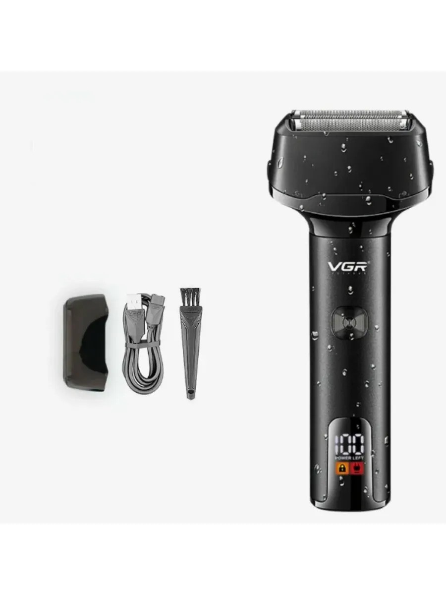 Electric razor, Shaver VGR V-371. Electric razor - compact, shaver for edging and dry shaving. Designed to maintain smooth skin (dry shaving of stubble). Provides a safe shave, easy to use. A powerful charge will allow you to shave several times and not worry about looking for an outlet. LED display which shows the battery charge level. Features and benefits of the electric razor: • Waterproof case maximum protection IPX 5; • Wet and dry shaving, can be used with shaving cream; • Pop-up trimmer; • USB charging of the razor; • Ergonomic design; • Travel lock; Small dimensions save space and allow you to take the razor with you on any trip. Specifications: LED display: shows the charge level; Indicators: travel lock, charge, work; Battery life 70 minutes; Charging time 1.5 h; Power type: battery; mains; Blade material: stainless steel; Super close to the skin clean shave; Power USB cable without block; Use: for face, hair, body, for short hair. Body material: metal + ABS plastic; Shaving system: rotary; Voltage 5 V DC; Rotary motor 8000 rpm; Battery LI-on 700 mAh; Power 5 W; Size: 148X58X33; Weight: 145 g; Package includes: Electric shaver, protective cover, USB cable, brush, gift box.