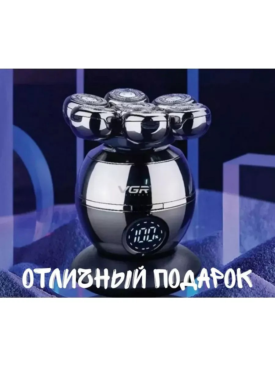 Электробритва V.G.R. для лица от нашего бренда – это превосходное решение для аккуратного и безупречного бритья на каждый день. Она сочетает в себе инновационную технологию и стильный дизайн, чтобы удовлетворить самых требовательных мужчин. Электро бритва для сухого и влажного бритья оснащена четырьмя различными насадками, которые позволяют не только бриться, но и заботиться о вашей коже. В комплекте вы найдете насадку для умывания, которая эффективно очищает кожу от загрязнений и дает ощущение свежести. Щетка для массажа подарит вам приятное расслабление, а также поможет улучшить циркуляцию крови в области лица. Насадка для носа и ушей позволяет легко и безопасно удалять нежелательные волоски, а триммер для стрижки волос идеально подстрижет щетину, придавая образу более современный вид. Одной из главных особенностей является LED-дисплей с индикатором уровня заряда батареи - теперь вы всегда будете знать, когда нужно подзарядить свою бритву. Удобная зарядка с USB-кабелем от сети помогает заряжать ее в любом месте, где есть розетка. Семь плавающих головок адаптируются к контуру лица, обеспечивая максимально гладкое и комфортное бритье, а двойная бритвенная дорожка со встроенной защитой от защемления дарит безопасность и предотвращает повреждение. VGR один из лучших аналогов известных брендов таких как Philips, Panasonic, Xiaomi, Rowenta, Remington, Braun. Использование бренда исключительно для поиска
