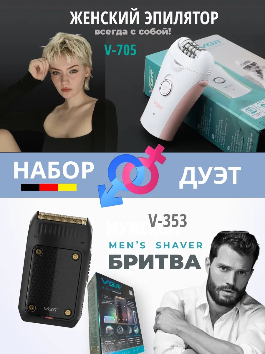 VGR Набор 2 шт мужская бритва V353, женский эпилятор V705