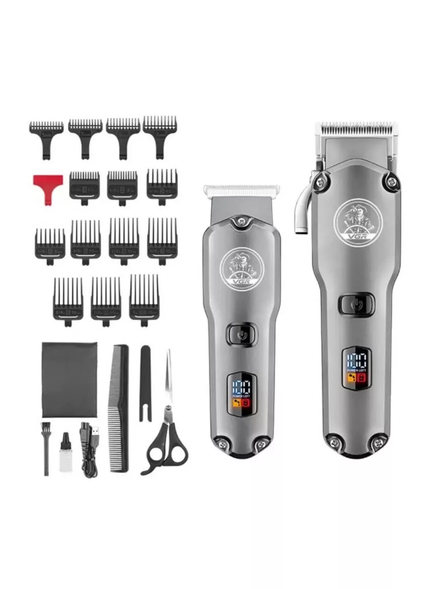 The professional 2-in-1 hair clipper set V-675 consists of two full-fledged professional tools with many attachments for each: hair clipper; beard, mustache and edging trimmer. Powerful rotary motor with increased torque. The hair clipper and trimmer have stainless steel blades. This material is highly hard and durable, allowing the hair clippers to handle even the thickest and coarsest hair. The professional hair clipper and trimmer are equipped with an innovative built-in Li-Ion battery. You can cut hair both autonomously and from the mains. Extended battery life! Technical characteristics of the hair clipper: - Stainless steel blades; - Cutting height settings without attachments 0.8-2 mm (smooth lever movement); - 10 attachments: 1.5/3/4.5/6/10/13/16/19/22/25 mm; -LED display; -Waterproof housing, water resistance class IP6; -Wet cleaning of the cutting head; -R-shaped design of the blades protects the skin from damage; -Low noise level; -Power 10 W; -Lithium battery 2000 mAh; -Long battery life of 4 hours; -Full charge time only 3 hours; -Possibility of operation from a network of 100 - 240 V, 50/60 Hz; -Rotary motor; -Weight of the machine: 297 g. Technical characteristics of the trimmer: -Stainless steel knives; -4 attachments: 1/3/5/7 mm; -LED display; -Waterproof housing, water resistance class IP6; -Wet cleaning of the cutting head; -R-shaped design of the blades protects the skin from damage; -Low noise level; -Power 5 W; - 1200 mAh lithium battery; - Long battery life of 2 hours; - Full charge time of only 2 hours; - Possibility of operation from a network of 100 - 240 V, 50/60 Hz; - Rotary motor; - Trimmer weight: 172 g