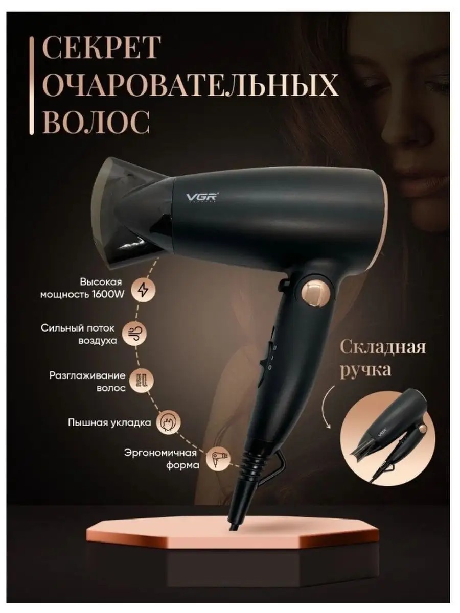 This folding hair dryer is a godsend for children and adults who care about the beauty and health of their hair. It comes with two rotating and wide interchangeable attachments, allowing girls and young women to create a variety of styles and effects. This electric hair dryer is ideal for straightening and curling curly hair. This versatile device is equipped with a loop holder for wall mounting. It's ideal for hairdressing and is suitable for drying children's, women's, and men's curls. This powerful model features a built-in button for adjusting automatic modes and hot and cold air settings, protecting curls from high temperatures. Its compact size makes it easy to store at home. Its uniform heating will add volume to long, curly, and unruly hair. It uses minimal electricity and has a convenient design. We have special offers and sales, so you can buy our products as gifts at a discount!