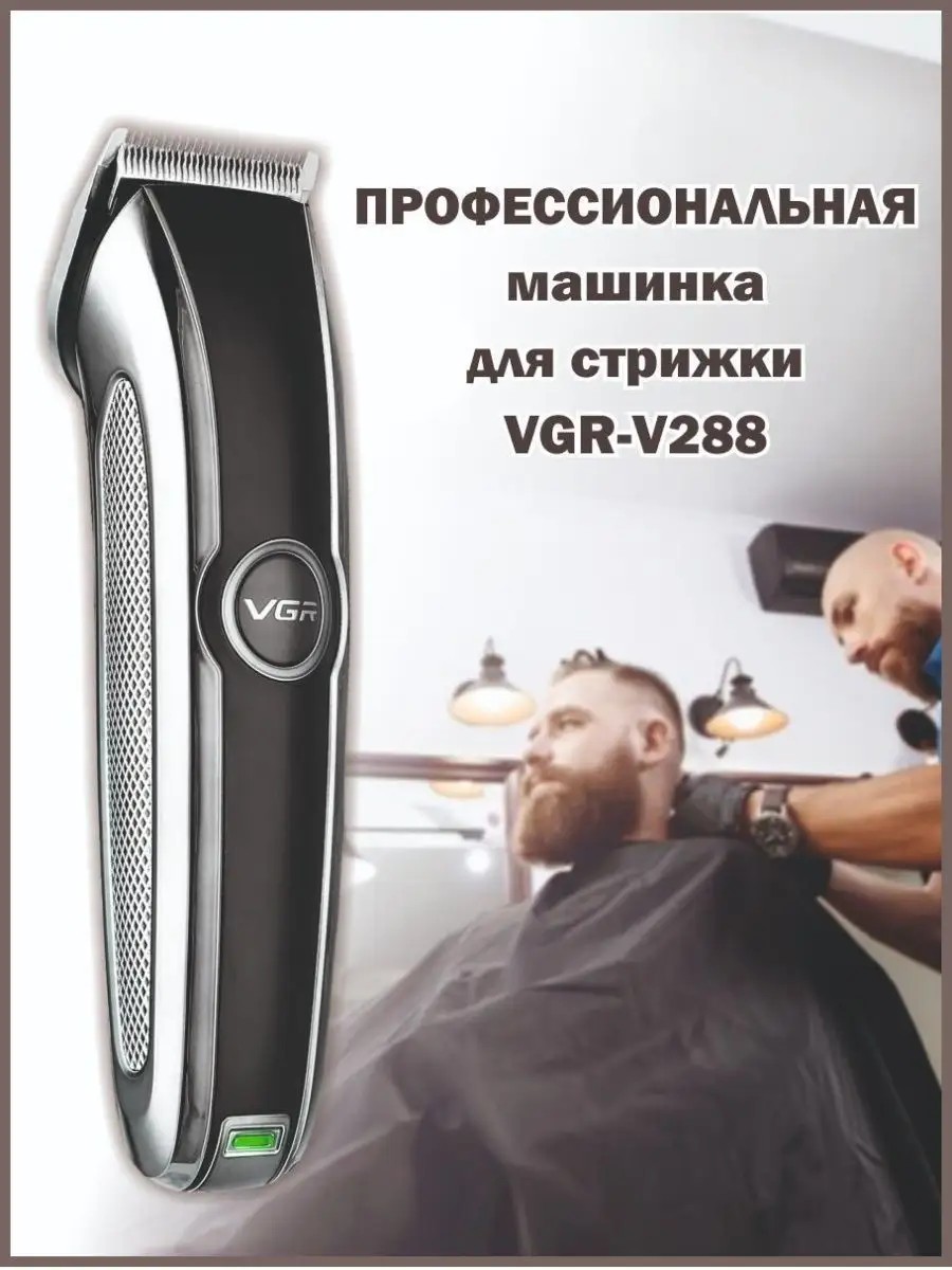 | Комплектация | Профессиональная машинка для стрижки волос VGR V-288; USB кабель для зарядки; 4 насадки (3/6/9/12 мм); щеточка для чистки; техническое масло |