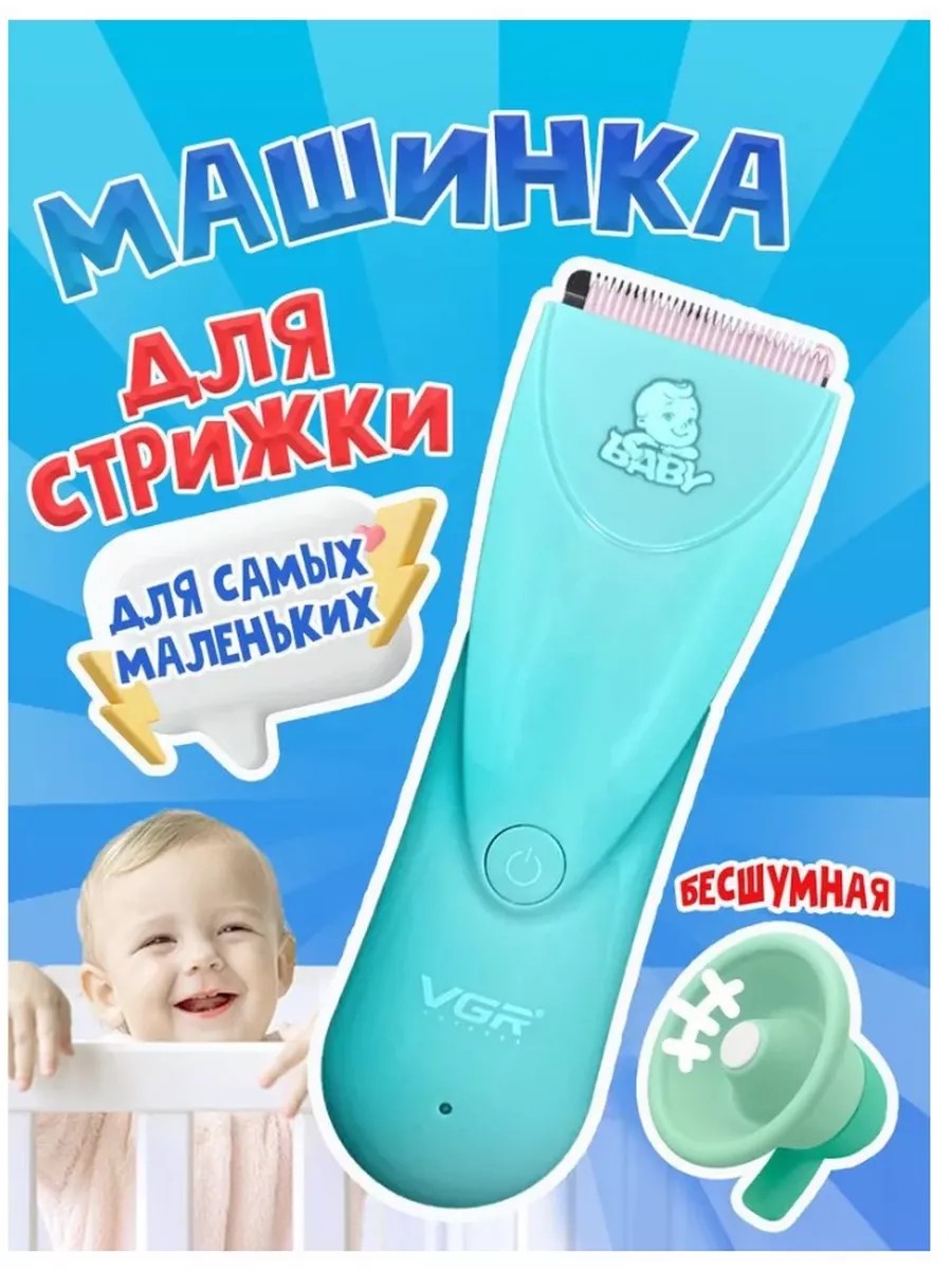 Машинка для стрижки волос детская VGR V-150 это мини-триммер специально разработанный профессионалами для ухода за младенцами и детьми, который безопасно и аккуратно срезает мягкие волоски вашего малыша, не повреждая нежную кожу. Эта беспроводная электрическая машина стайлер для детей имеет 3 насадки от 3 до 12 мм. Пока вашему малышу не доступна профессиональная парикмахерская, вам пригодится наша бесшумная подстригательная аккумуляторная электро техника. У детского триммера три двусторонних гребня для стрижки волос и удаления первых волосков с головы (3 мм/6 мм/12 мм), в том числе один для комфортной стрижки за ушками — со скошенными зубчиками. Насадки электромашинки снимаются с устройства одним движением благодаря магнитным вставкам. Управление у данного устройства простейшее, всего одна кнопка — включить-выключить, а уровень шума настолько низкий, что не потревожит сон даже самого активного ребенка. Одно нажатие запускает машинку, повторное нажатие запускает всасывание волос. Ручная бритва наделена мощной вакуумной системой всасывания. Срезанные волоски попадают в контейнер, который легко снимается и чистится. Лезвия режущего блока керамические, они долго остаются острыми. Такие не нагреваются в процессе работы, а значит, не причиняют младенцу дискомфорта. Кончики лезвий закругленные, так что риск случайно поцарапать детскую кожу минимален. После стрижки режущий блок можно почистить щеточкой, которая есть в комплекте, или промыть под проточной водой. После того как лезвия просохнут, их нужно смазать маслом — его производитель тоже заботливо положил в коробку с устройством. Работает детский бритвенный шейвер тример от встроенного литиевого аккумулятора, полного заряда хватает на 60 минут, а когда он иссякнет, на корпусе загорится световой индикатор. Заряжается прибор за 120 минут. В комплекте присутствуют насадки, USB-кабель, щеточка, масло и сам триммер. Набор подходит доя новорожденных девочек и мальчиков