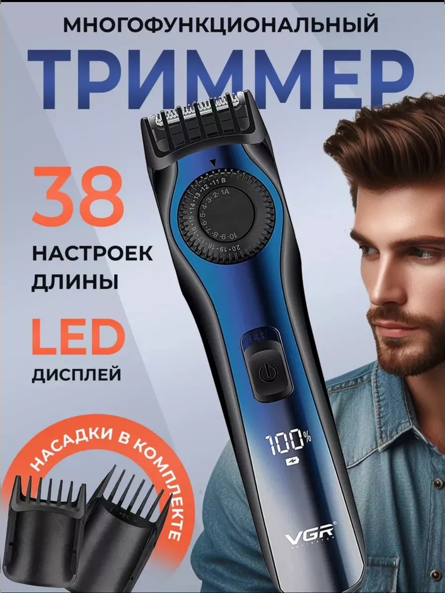 Триммер для бритья бороды и усов «VGR» - мощный и универсальный аксессуар. Электрический прибор - идеальный инструмент для мужчин, парней и подростков. Он станет прекрасным подарочным вариантом! С помощью электробритвы вы сможете легко ухаживать за бородой, усиками, корректировать стрижку волос на голове и зонах лица. Портативный триммер в стильном дизайне оснащен нержавеющими лезвиями. Модель обладает колесом регулировки длины: каждый подберет для себя нужную длину - от 0,5 до 20 мм. Принадлежность имеет встроенный электронный LED – экран, который показывает уровень заряда батареи. Мощный электротриммер обеспечивает почти бесшумную работу и подойдет как для домашнего использования, так и для профессионального – парикмахерами. В комплекте, помимо триммера, идет USB – шнур для зарядного устройства с питанием от сети, инструкция и 2 гребня для регулировки длины – 1 - 10 мм и 11 - 20 мм. В наборе есть масло и щеточка. С помощью щетки чистка и промывка будут легкими и удобными. Аксессуар с индикатором зарядки в корпусе из ABS - пластика черно - синего цвета – идеальная мужская бытовая аккумуляторная техника. Время автономной работы многофункционального гаджета - до 120 минут после зарядки, что позволяет использовать беспроводное устройство в любых местах и дорожных условиях. Прибор с системой защиты подойдет для юношей и взрослых людей, станет помощником в моделировании и коррекции длины щетины и формы, обеспечит четкий контур окантовки. Ручной аппарат с удобной ручкой поможет удалить секущиеся кончики. Этот триммер - отличный выбор для мужчин, которые ценят качество и удобство. Он станет отличным подарком для вашего мужа или парня на Новый год, свадьбу или годовщину. Этот предмет – отличное средство для ухода и гигиены, а также вашей красоты и здоровья, который выручит вас всегда! В нашей коллекции вы найдете большой выбор триммеров для усов бороды и стрижки волос. У нас есть акции и распродажи, вы можете купить наши товары в подарок со скидкой!