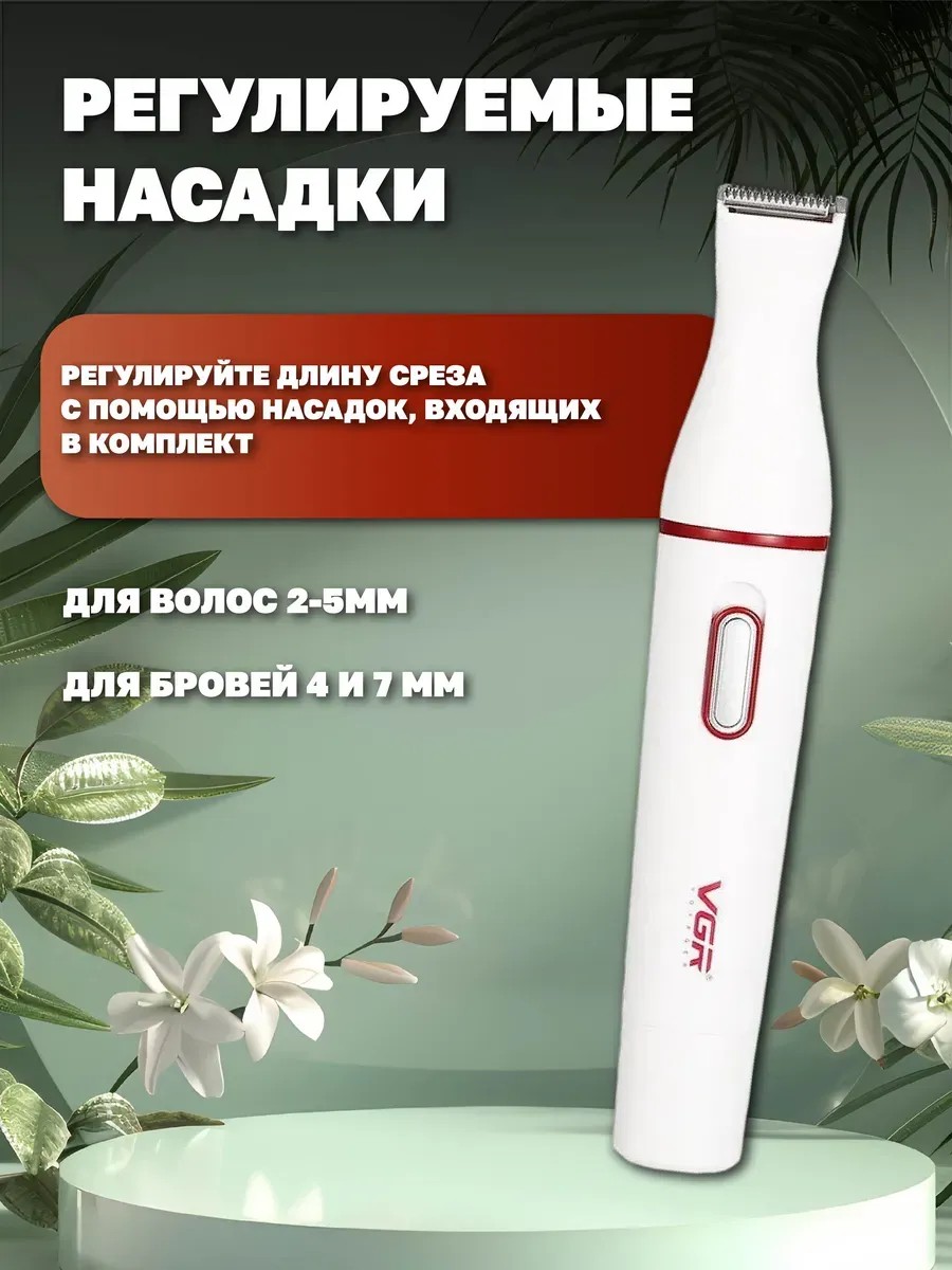 С помощью женского триммера VGR V-725 4 в 1 вы получаете идеальную эпиляцию и шелковистую, гладкую кожу. Он удобно держится в руке и очень удобен в работе, обеспечивает более легкие и точные движения - идеальный выбор для удаления волoс в труднодоступных зонах.