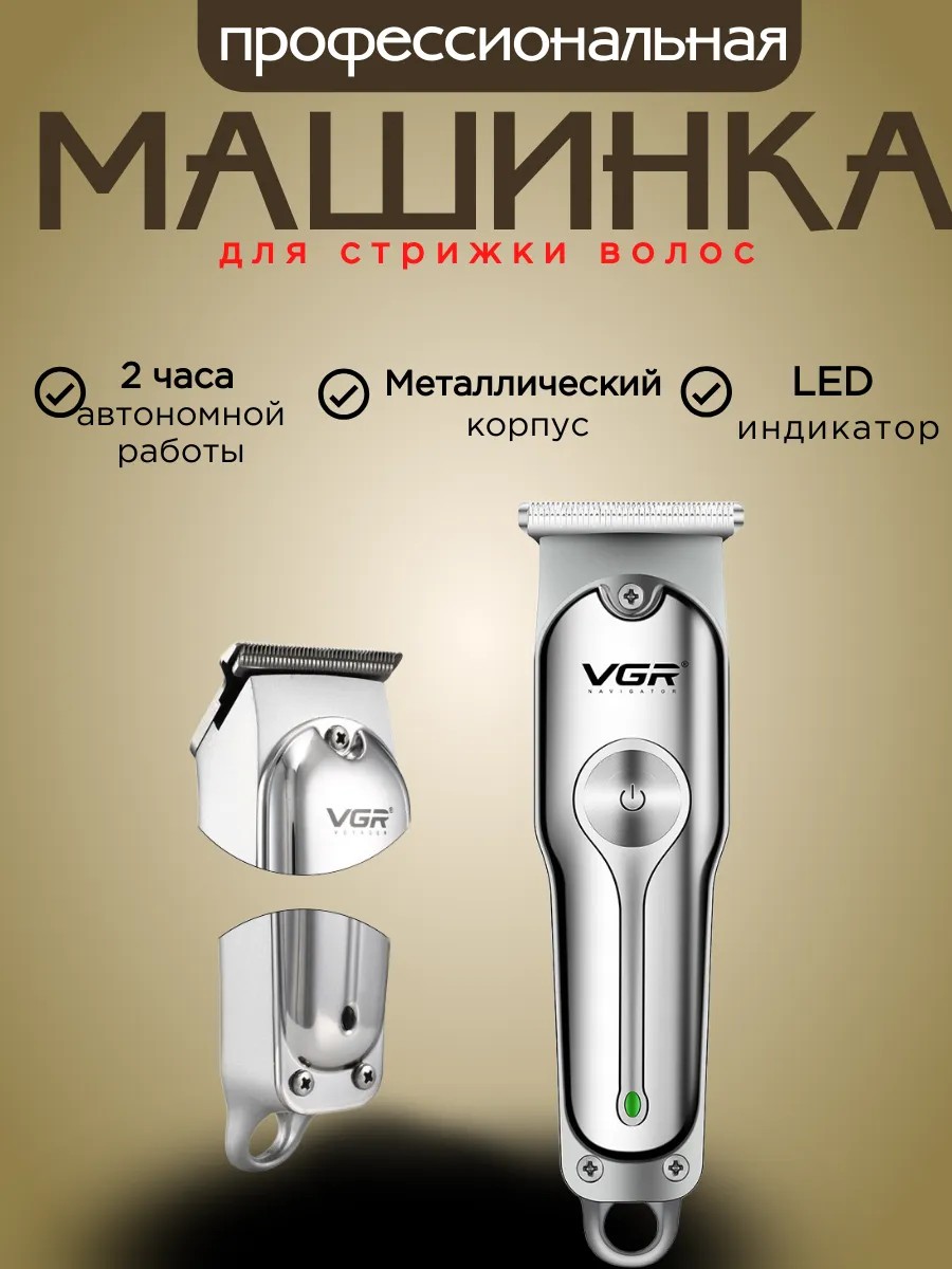 Беспроводная машинка для стрижки VGR, она же машинка для стрижки волос профессиональная аккумуляторная. Подходит для стрижки волос разной длины, она предназначена для домашних условий, а также, для профессионального использования в парикмахерских, салонах красоты, барбершопах. Модель отличается металлическим корпусом, устойчивым к воздействию вибрации, низким уровнем шума, плавным ходом острых лезвий, удобством и длительным сроком эксплуатации. Универсальная модель имеет компактный и стильный винтажный дизайн, отличную эргономику, легкий вес и высокую мощность! Добротная подарочная упаковка, которая впечатлит любого мужчину. Семейная машинка для стрижки волос для мужчин, женщин и детей очень удобна в использовании. Так же она подходит для ухода за бородой, усами и телом и может являться отличным подарком на любой праздник. Эргономичная форма триммера позволяет контролировать каждое движение прибора, обеспечивая полный комфорт и уход за лицом. Вы можете установить длинны при помощи четырех насадок. Закругленные лезвия и гребни предотвращают раздражение кожи. Мощный мотор работает качественно и без вибраций. Самозатачивающиеся лезвия машинки из нержавеющей стали дольше остаются острыми, не требуют специального ухода и обеспечивают великолепные результаты стрижки. Также подойдет для интимной зоны и зоны бикини! Универсальная машинка для стрижки может использоваться как триммер для стрижки волос , бороды и усов.