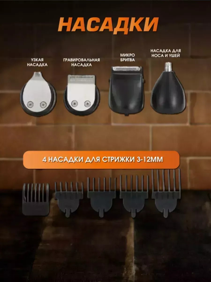 Погрузитесь в мир стиля и ухода с многофункциональной машинкой для стрижки 11 в 1. Это идеальное решение для создания безупречного образа, которое станет вашим незаменимым помощником. Оснащенная четырьмя насадками, машинка позволяет легко выбирать длину стрижки от 3 до 12 миллиметров, обеспечивая разнообразие укладок и точность результата. В комплект входит также триммер с узкими ножами, идеально подходящий для художественного бритья, а также триммер для ушей и носа, чтобы уход за собой стал максимально простым и комфортным. Мощный аккумулятор, который заряжается через USB всего за 2 часа, обеспечивает до 150 минут автономной работы, что делает этот инструмент крайне удобным для использования в любых условиях. Ножи из нержавеющей стали гарантируют долговечность и эффективность, легко справляясь даже с самыми жесткими волосами. Особая функция преобразования в сеточную бритву с головкой на 3-4,5 мм позволяет добиться гладкости кожи, а водонепроницаемая конструкция IPX6 облегчает уход за устройством. Индикатор зарядки и LED-дисплей делают процесс использования еще более удобным. Минимальная высота среза всего 0,5 мм и комплект из 10 насадок дают вам полный контроль над вашим стилем. Легкий вес и компактные размеры обеспечивают комфорт в использовании, а низкий уровень шума создает приятную атмосферу во время стрижки. Освежите свои привычки ухода и станьте мастером своего стиля с универсальной машинкой 11 в 1 – идеальным выбором для стрижки и ухода!