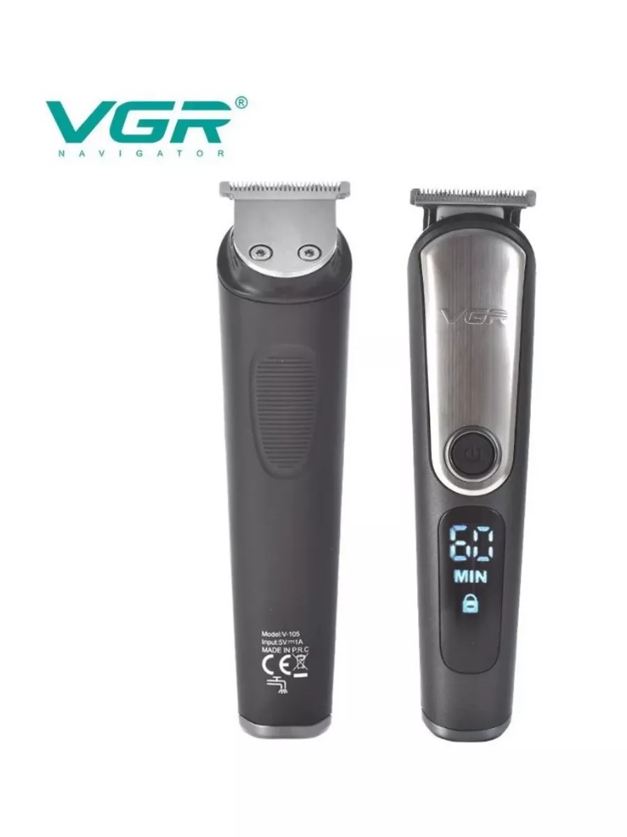Многофункциональный набор V-105 для стрижки волос сочетает в себе несколько устройств - профессиональный полноразмерный триммер для стрижки волос, бороды и усов с 5-ю насадками (3/6/9/12/15 мм) узкий триммер для художественных элементов стрижки и окантовки, а так же триммер для ушей и носа. В многофункциональном устройстве используются качественные ножи из нержавеющей стали для долгой и надежной работы. Они справятся с жесткими и густыми волосами. Беспроводной триммер работает на аккумуляторе. Он заряжается от USB в течение 1,5 часов до полного заряда. Одного заряда триммера хватает на 60 минут беспрерывной работы. Кабель USB идет в комплекте. Несмотря на большую мощность мотора, работает машинка для волос с очень низким уровнем шума