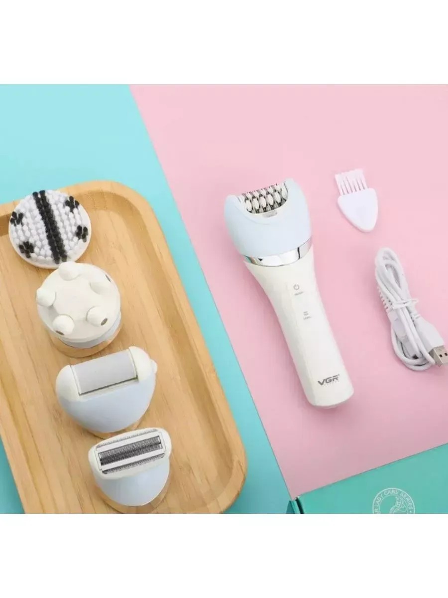 Эпилятор с множеством функций удаления волос V-703 является многофункциональным бьюти-устройством. Он будет для вас идеальным девайсом при уходе за собой, для того чтобы ваша кожа стала стала ухоженной, гладкой и предавала вам уверенности в себе. Беспроводной эпилятор этой модели может производить бритье как сухого так и влажного типа. Этот стильный прибор выручит вас и обеспечить идеальный вид кожи за считанные минуты - так просто им пользоваться. В комплекте есть насадка для удаления волос, которая повторяет контуры тела и сбривает даже самые непослушные волосы. Дополнительно вы можете установить защитную крышку для использования в чувствительных зонах. Для более качественного и деликатного бритья используйте бритвенную насадку. Специально для ваших ножек производитель предусмотрел приятный бонус и приложил к комплекту насадку-пемзу, которая поможет вернуть мягкость и чувствительность коже стоп. Также устройство может использоваться как чистящий прибор для вашей кожи. Благодаря насадке для пилинга можно произвести бережное освобождение кожного покрова от ороговевшей ткани. Это поможет провести салонную процедуру по уходу за кожей лица не выходя из дома. Мощный мотор прибора позволяет также производить массаж с массажной насадкой для обеспечения правильного лимфодренажа, что вернет вам свежесть и отдохнувший вид. Эпиляцию следует проводить на сухой очищенной коже. Эффективнее всего вести эпилятор против роста волос под прямым углом, проводя устройством по коже, нужно её слегка натягивать.
