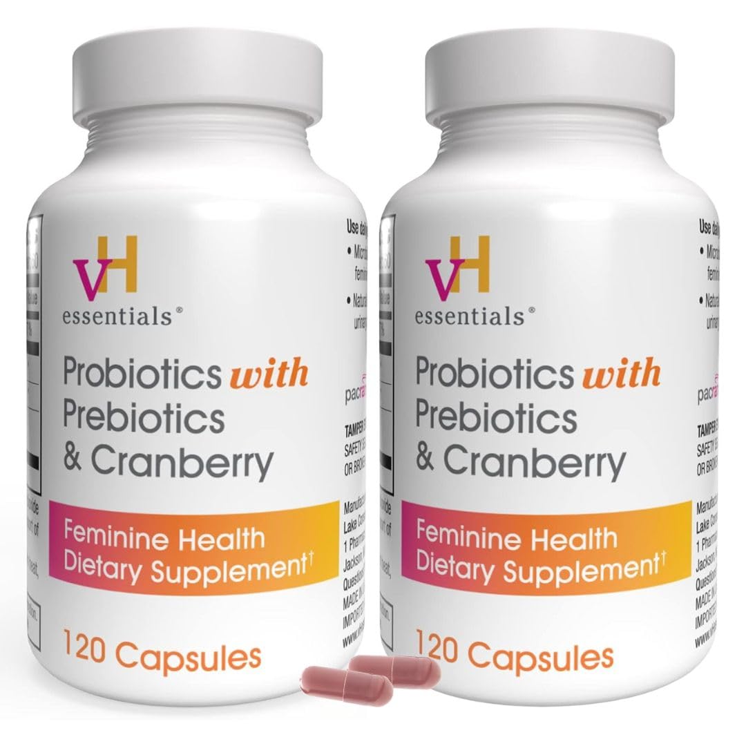 vH essentials Probiotics for Women with Prebiotics Cranberry & Vitamin C 120 Capsules -2 Pack Vaginal Probiotics Support Gut Balance Vaginal Health & Urinary Tract Health for Women
