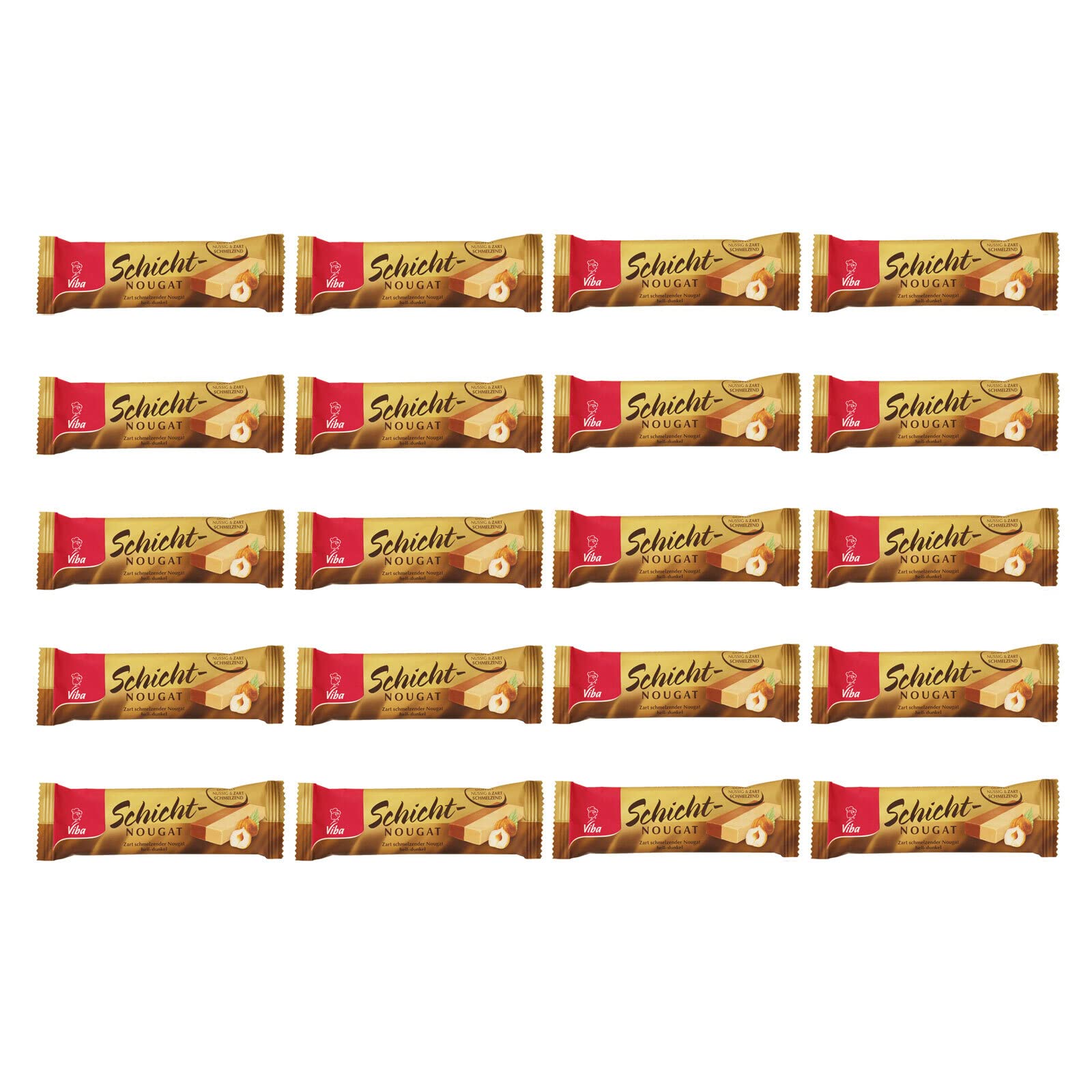 Viba layered nougat contains 40g. You will receive a pack of 20. A layer of light nougat and a layer of dark nougat combine for pure pleasure in one bar. This combination is unique and offers an incomparable taste. This sweet treat can be enjoyed as a small snack between meals or during a break. A delicacy not to be missed by nougat lovers. Ingredients: sugar, 35 roasted hazelnuts, cocoa butter, cocoa mass, milk powder, emulsifier: soy lecithin, bourbon vanilla. May contain peanuts, other tree nuts, and cereals containing gluten. Protect from heat and store in a dry place. Avoid extreme temperature fluctuations. Nutritional value per 100g: Energy: 2373 kJ (570 kcal) Fat: 37.2 g - of which saturates: 10.7 g Carbohydrate: 49.2 g - of which sugars: 48.4 g Protein: 7.6 g Salt: 0.03 g Net weight: 20 x 40 Manufacturer: Viba Sweets GmbH, Die Aue 7, 98593 Floh-Seligenthal INGREDIENTS Sugar, 35 roasted hazelnuts, cocoa butter, cocoa mass, whole milk powder, emulsifier: soy lecithin, bourbon vanilla. May contain peanuts, other tree nuts, and cereals containing gluten.Viba Lot de 20 couches de nougat (20 x 40 g)DESCRIPTION DU PRODUIT DESCRIPTION DU PRODUIT Le nougat stratifié Viba contient 40 g. Vous recevrez un lot de 20. Une couche de nougat clair et une couche de nougat foncé se combinent pour un pur plaisir dans une barre. Cette combinaison est unique et incomparable dans le goût. Cette friandise sucrée peut être préparée comme une petite collation entre les deux ou pendant la pause. Une délicatesse qui ne doit pas manquer chez les amateurs de nougat. Ingrédients : sucre, 35 de noisettes grillées, beurre de cacao, pâte de cacao, lait en poudre, émulsifiant : lécithine de soja, vanille bourbon. Peut contenir des arachides, d'autres fruits à coque et des céréales contenant du gluten. Protéger de la chaleur et conserver au sec. Évitez les fortes variations de température. Valeur nutritionnelle pour 100 g : Valeur énergétique : 2373 kj (570 kcal) Matières grasses : 37,2 g - dont acides gras saturés : 10,7 g Glucides : 49,2 g - dont sucres : 48,4 g Protéines : 7,6 g Sel : 0,03 g Capacité nette : 2 0 x 40 Fabricant : Viba Sweets GmbH, Die Aue 7, 98593 Floh-Seligenthal INGRÉDIENTS Sucre, 35 de noisettes grillées, beurre de cacao, pâte de cacao, poudre de lait entier, émulsifiant : lécithine de soja, vanille bourbon. Peut contenir des arachides, d'autres fruits à coque et des céréales contenant du gluten.