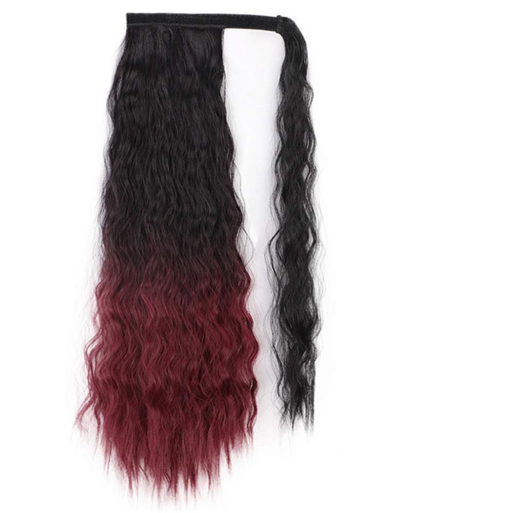 Vibrant Corn Wavy Long Ponytail Synthetic Wig Wrapped In Clip Hair Extension With Brown Ponytail Hair Pieces 22inches 2011-1B-BUG