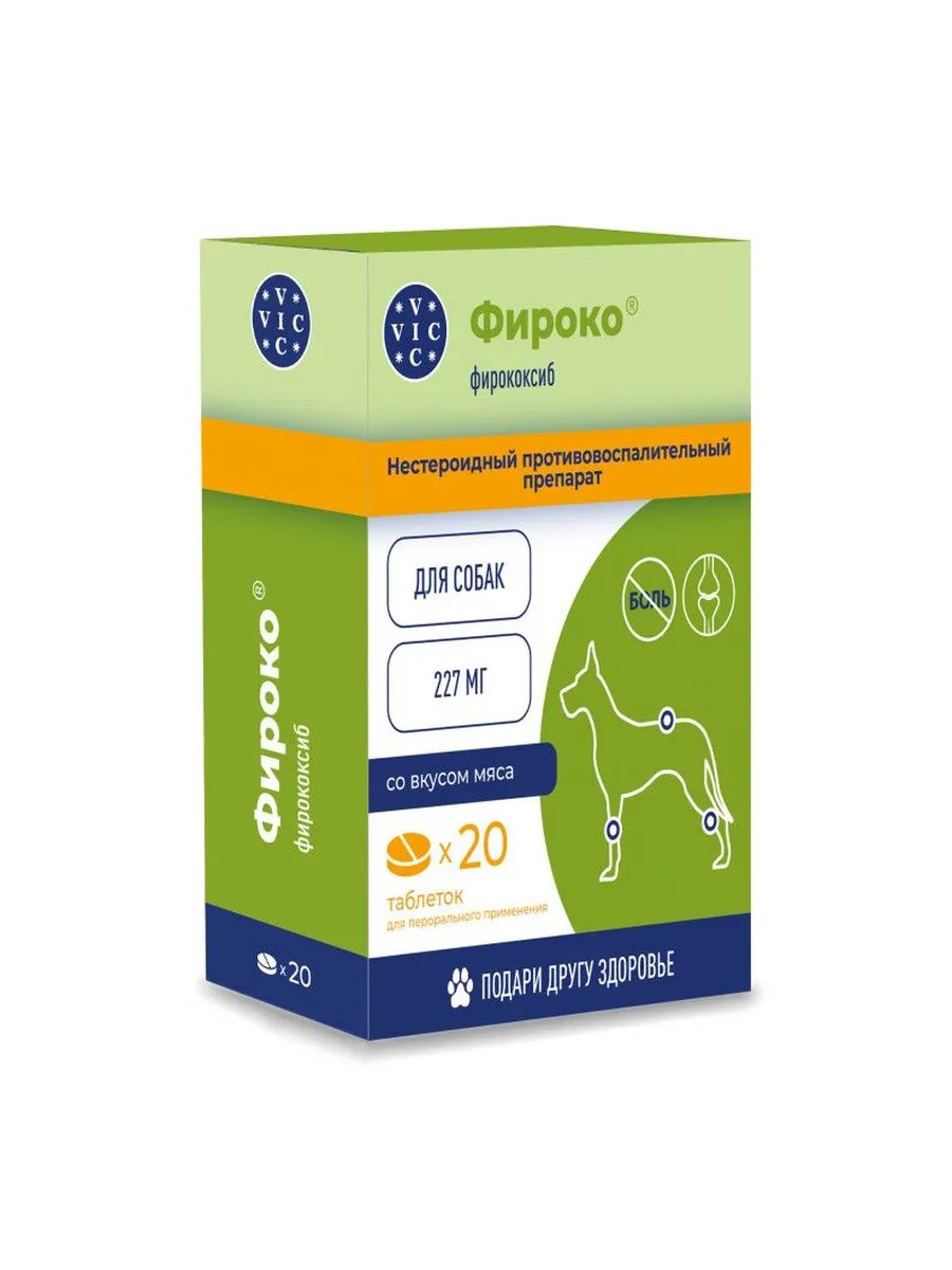 | Полное наименование товара | VIC, Фироко 227 мг нестероидный противовоспалительный препарат для собак крупных пород - 20 таблеток |