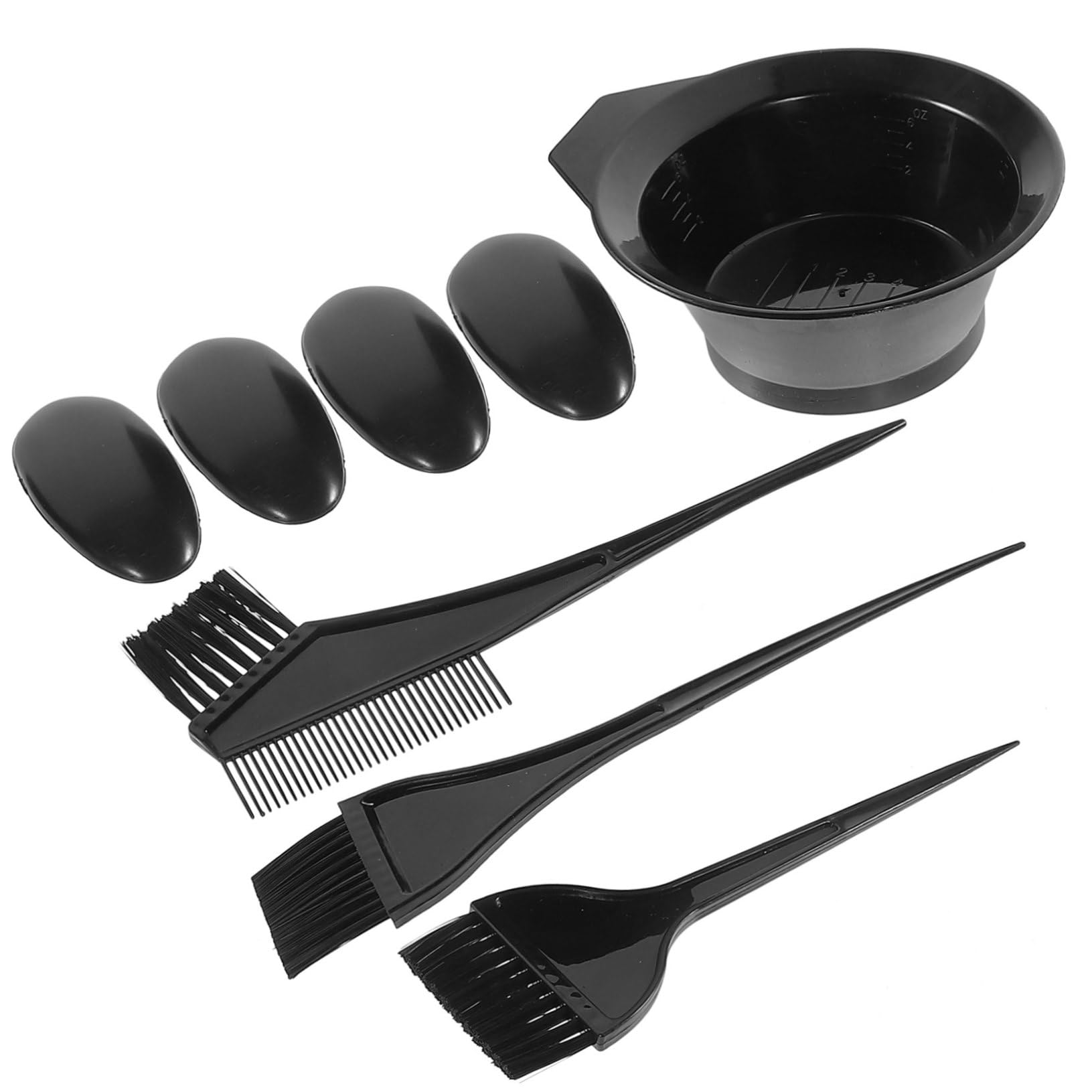 Contents: 1 set of hair coloring tools. Features: - Color: Black coloring tools - Material: Plastic. Easy and convenient to use, saving you a lot of effort and time creating trendy hairstyles and coloring products. Wide range of application: Perfect for professional salon use and as a coloring accessory kit for personal use. - The brush and bowl help apply color evenly to the hair, and the ear covers prevent your ears from getting hair dye on them. All types of tools are suitable for all hairstyles, e.g., short hair, long hair, curly hair, or straight hair (with coloring kit). - Very convenient to use, suitable for both professionals and beginners. : With its trendy and classic design, this hair coloring brush is a great aid for coloring and caring for your hair. Hair coloring accessory kit: lightweight, reusable, easy to use, multifunctional—all the advantages you want are combined here. Hair coloring brush: exquisite coloring brush with excellent workmanship, can be used not only in a hair salon but also for coloring your hair yourself.