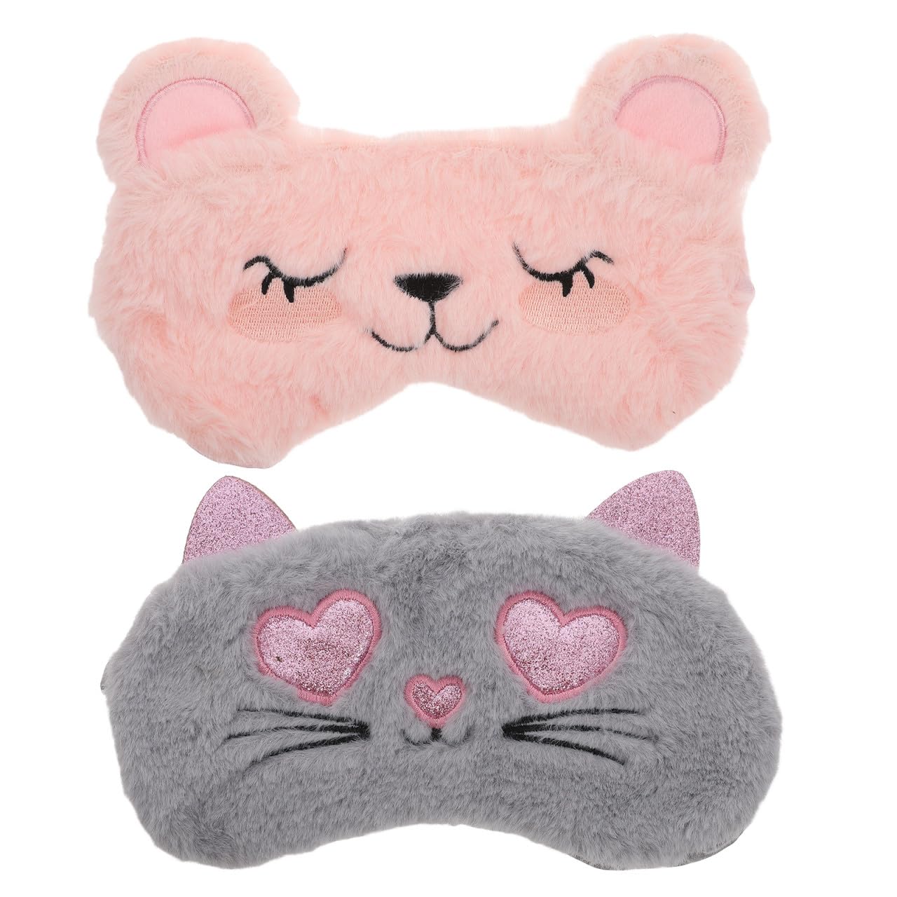 VICASKY 2 pièces Masque de Sommeil Peluche Masques Oculaires Cartoon Lumière pour Sommeil Réparateur Maison Voyage ou