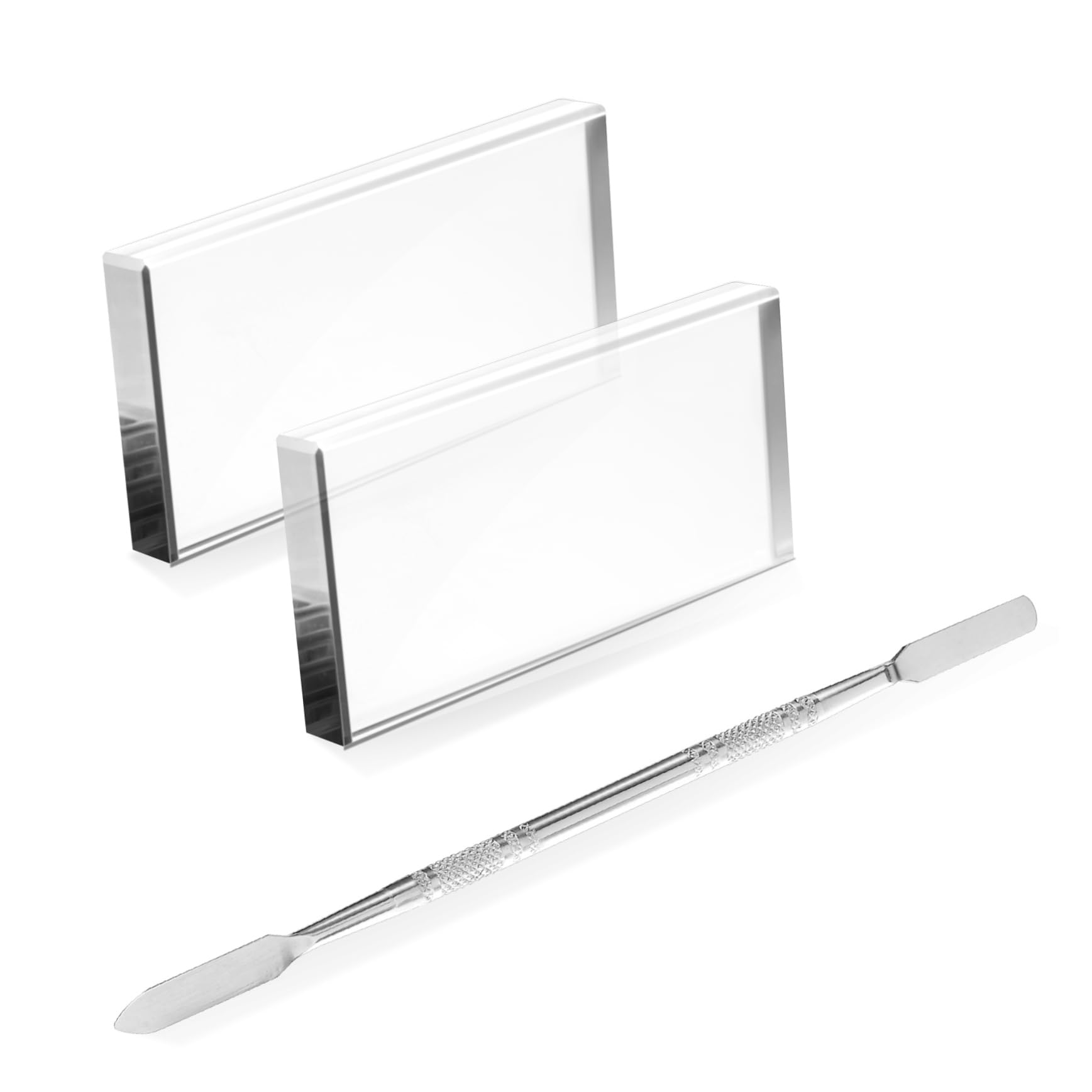 Package List: 2 x Nails, 1 x Cuticle Pusher Features: - Cuticle pusher length: 18 cm 7.09 inches - Nail size: approximately 9.00 x 4.00 x 1.00 cm 3.54 x 1.57 x 0.39 inches - Material: Glass, stainless steel color trays - Color: Assorted color cuticle pushers - The compact nail color palette is easy to hold and won't take up too much space on your countertop paint palette tray. - Suitable for mixing and blending nail powder, nail polish, eyelash glue, etc., and can also be used as a makeup palette, manicure tool, and nail art tool. - The nails are made of glass with a transparent surface and smooth texture for easy cleaning of the portable makeup palette. -The double-ended pusher makes it easy to scrape away tough, dead skin and cuticles from the nail mixing palette. : Cuticle Pusher Tool. Suitable for mixing and blending nail powder, nail polish, eyelash glue, etc. Cuticle Pusher: This product is a handy manicure tool set. Nail Polish Palette: The nail color chart is easy to hold and won't take up too much space on your work surface. Nail Pigment Palette: The double-ended pusher makes it easy to scrape away tough, dead skin from the nails. Paint Color Palette: Includes a stainless steel double-ended manicure and cuticle pusher.
