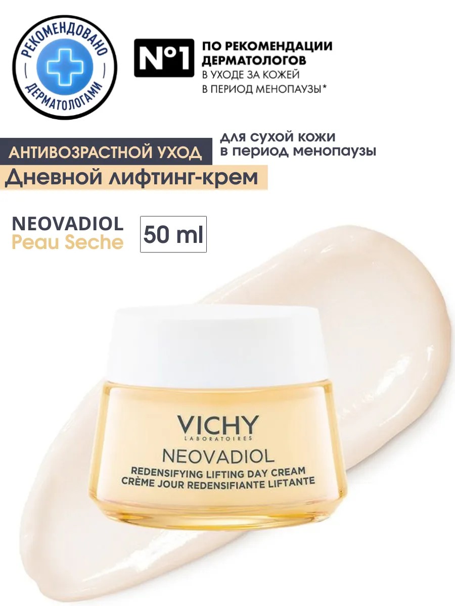 VICHY Neovadiol Peau Seche Лифтинг-Крем Дневной Уплотняющий, Восстанавливающий и ремоделирующий контуры лица дневной крем для кожи в период первых признаков менопаузы для нормальной и сухой кожи, 50 мл