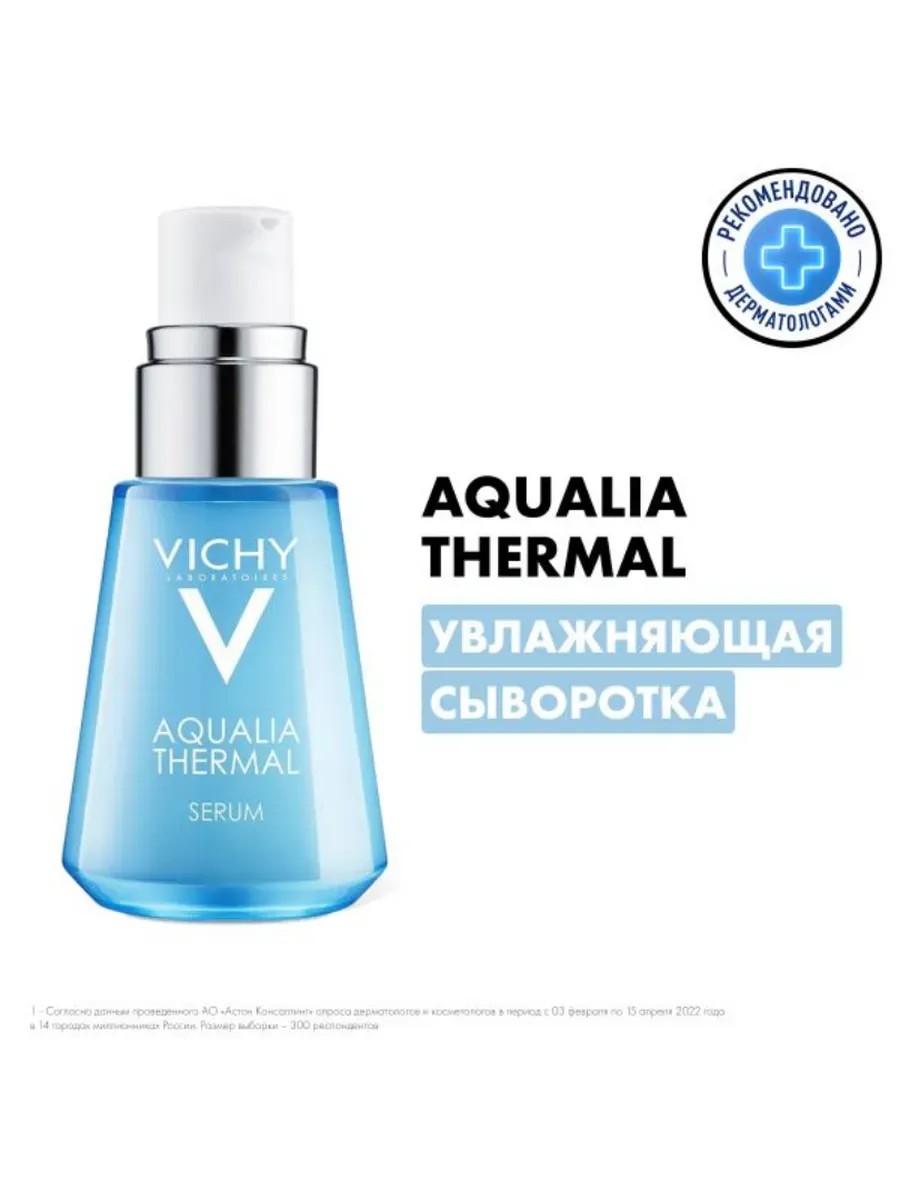 Сыворотка Aqualia Thermal для интенсивного увлажнения кожи Подходит для всех типов кожи Первая гамма*, содержащая увлажняющий «изотоник-коктейль» для восстановление водно-минерального баланса кожи.