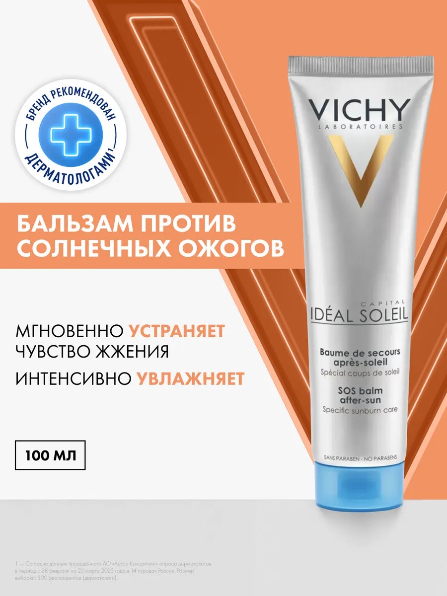 Мгновенно устраняет чувство жжения, жар и болевые ощущения. Бальзам предназначен для восстановления клеток кожи при солнечных ожогах. Активные ингредиенты: Термальная вода Vichy. Способ применения: Нанести толстым слоем на поврежденные участки кожи.- Повторять нанесение каждые 2-3 часа после появления солнечного ожога. Эффективность: Через 24 часа кожа успокаивается, покраснения исчезают. Защищает клетки кожи. Интенсивно увлажняет, восстанавливает естественный баланс кожи.Нежирная, нелипкая текстура. Быстро впитывается.