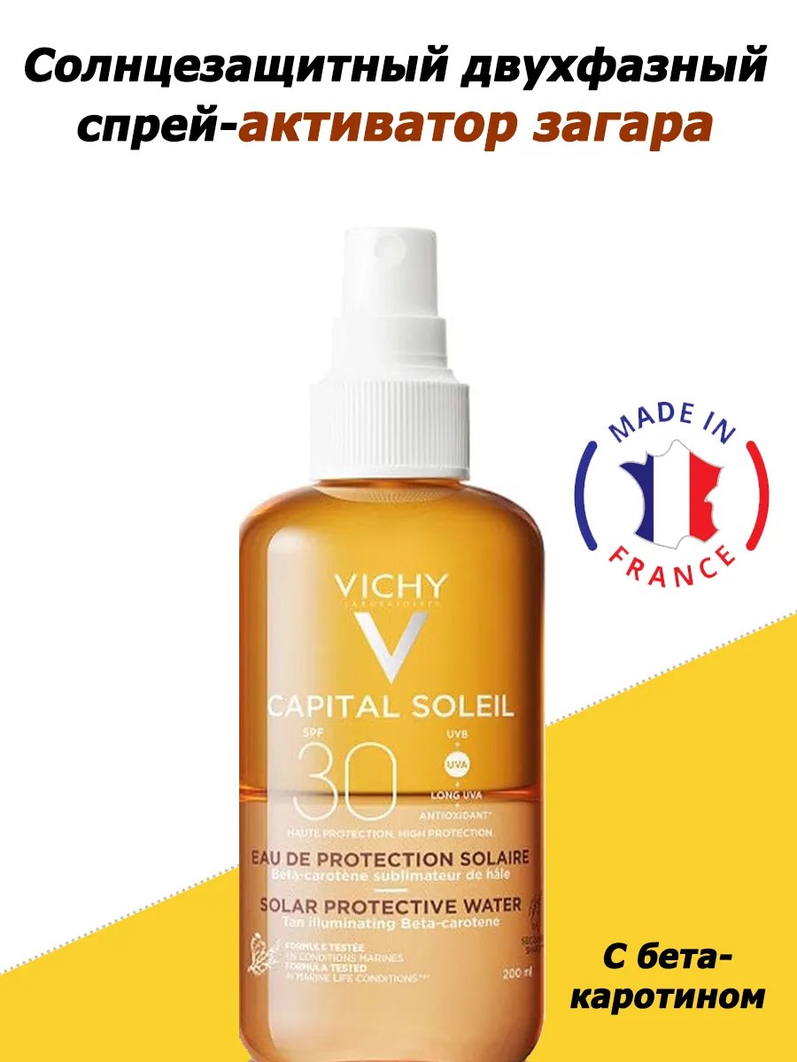 Летнее солнце дарит нам тепло и радость, но важно помнить о защите кожи от его вредного воздействия. Солнцезащитное средство Vichy Capital Soleil SPF30 — это ваш надежный спутник в борьбе за красивый и ровный загар. Произведенное во Франции, это средство не только защищает от UVA и UVB излучения, но и делает процесс загара максимально комфортным.С легкой двухфазной текстурой на водной основе, Vichy SPF30 моментально впитывается, не оставляя ощущения липкости и белых следов. Забудьте о дискомфорте — это средство дарит коже приятное освежение и нежный аромат, превращая загар в удовольствие. Благодаря гипоаллергенной формуле, оно подходит для всех типов кожи, включая чувствительную, и протестировано дерматологами.Одним из уникальных компонентов Виши Капитал Солей SPF30 является бета-каротин, который не только усиливает загар, но и способствует восстановлению кожи. Термальная минеральная вода из региона Виши увлажняет и освежает, а витамин Е защищает от свободных радикалов, обеспечивая необходимое питание. Вместе эти ингредиенты создают идеальные условия для приобретения более интенсивного и равномерного загара.Солнцезащитное средство Виши Капитал Солей SPF30 также устойчиво к воде и поту, что делает его идеальным выбором для пляжного отдыха. Вы можете наслаждаться морем и солнцем, не беспокоясь о том, что ваша защита может подвести. Легко наносится и быстро впитывается, оно оставляет на коже легкий сатиновый бархатистый финиш, который подчеркнет вашу красоту.Не забывайте наносить средство на кожу непосредственно перед выходом на солнце, избегая зоны вокруг глаз. Ваша кожа заслуживает лучшего — выберите Vichy Capital Soleil SPF30 и позвольте себе наслаждаться летом, морем и загаром без лишних забот. Сделайте каждый момент под солнцем по-настоящему приятным и безопасным!