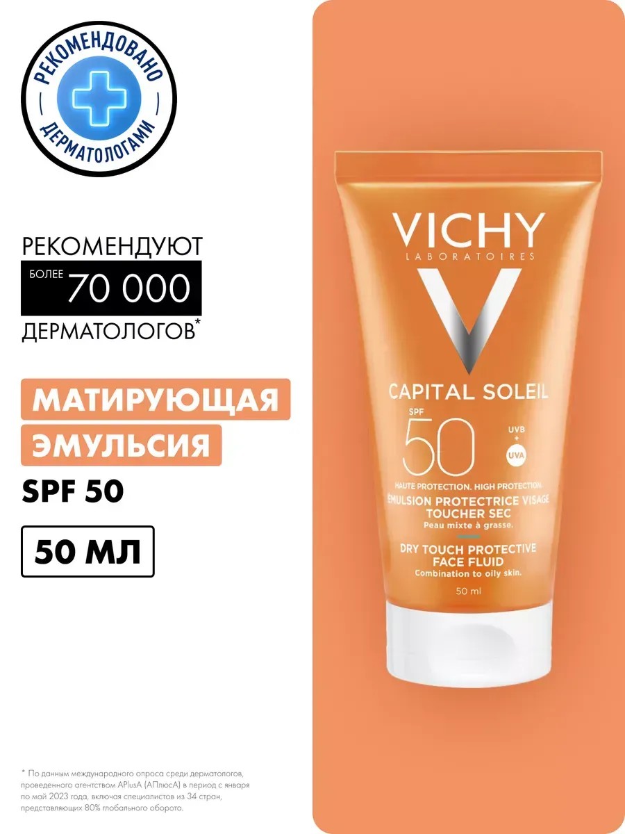 Vichy Capital Soleil SPF 50 is an innovative sunscreen mattifying emulsion, specially designed to protect facial skin from the harmful effects of UVA and UVB rays.