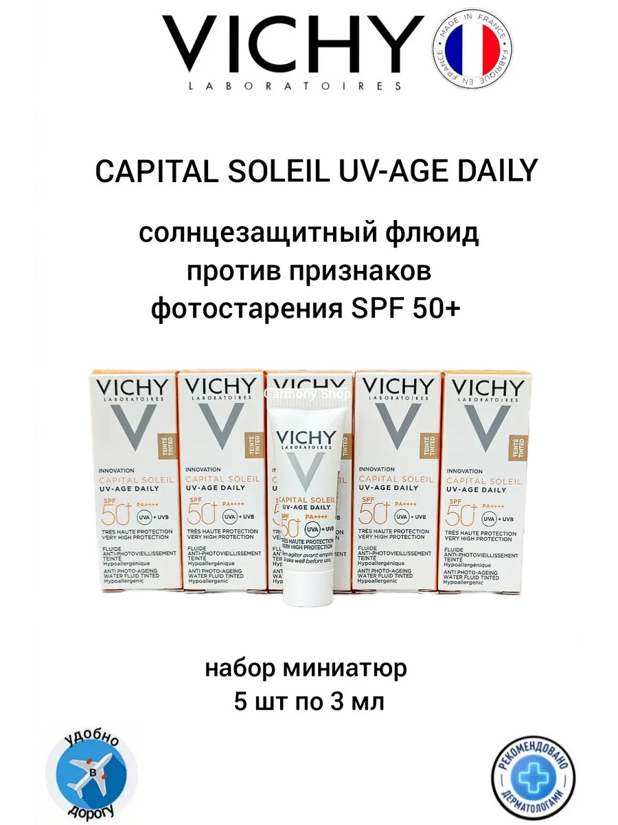Невесомый тонирующий солнцезащитный флюид для лица против признаков фотостарения «UV-age daily» SPF50+, защищает от признаков фотостарения кожи – пигментации, преждевременных морщин и снижения эластичности кожи, вызванных воздействием UV-лучей.