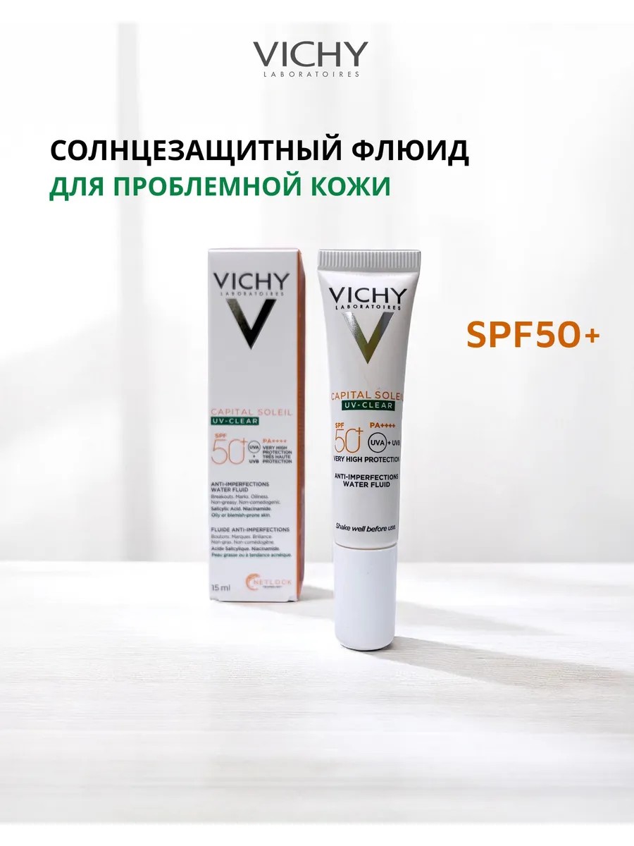 Capital Soleil UV-Clear –невесомый солнцезащитный флюид, разработанный специально для проблемной кожи. Миниатюра, 15мл.