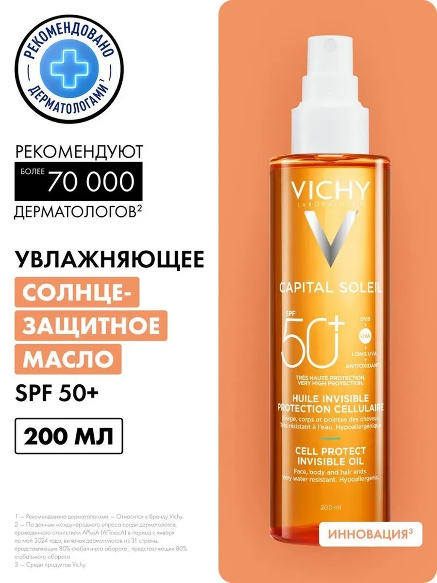 vichy CELL PROTECT Солнцезащитное увлажняющее масло SPF 50, 200 мл