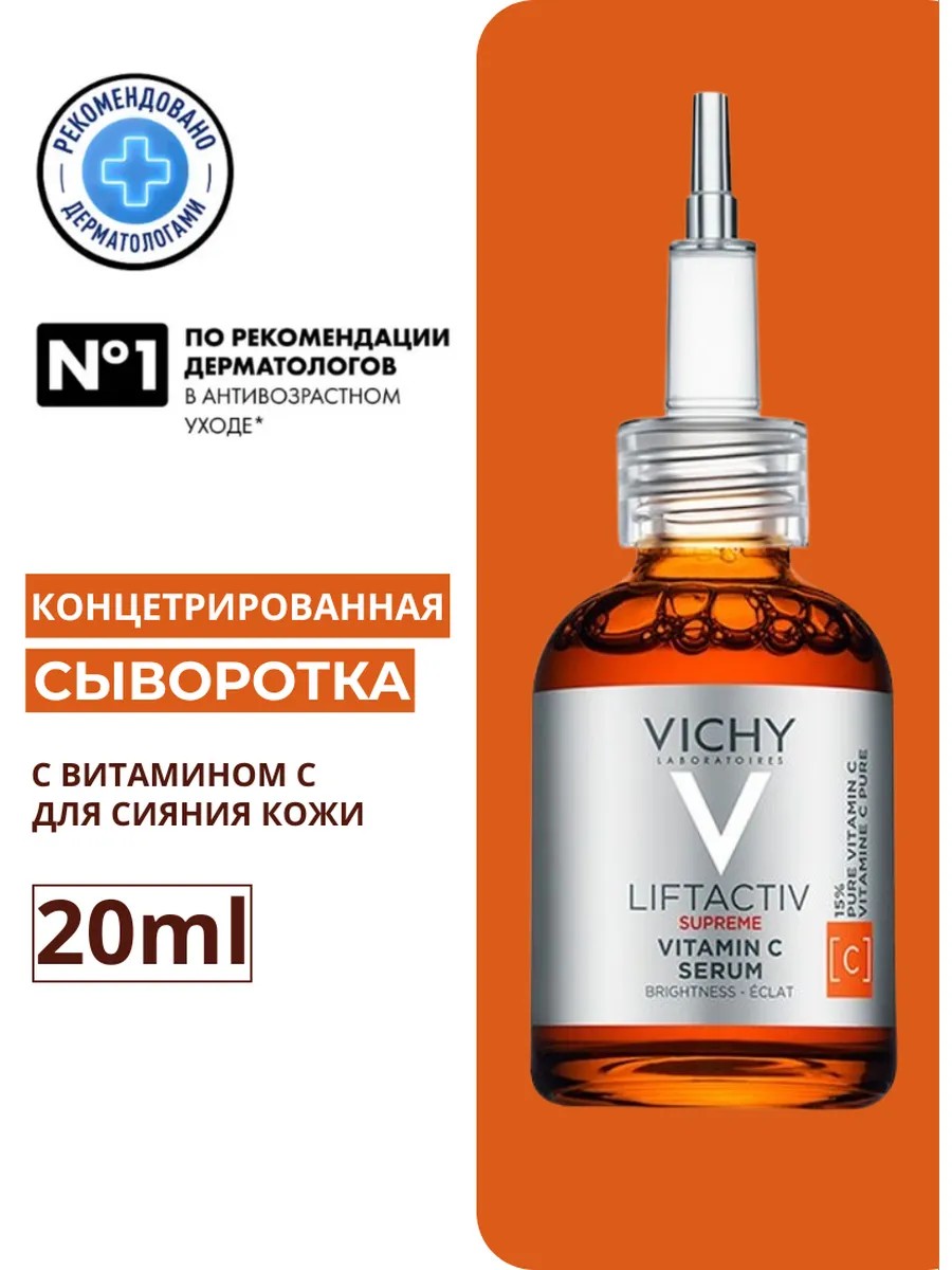 Концентрированная сыворотка Vichy Liftactiv Supreme Vitamin C Serum предназначена для борьбы с морщинами и тусклым тоном кожи.