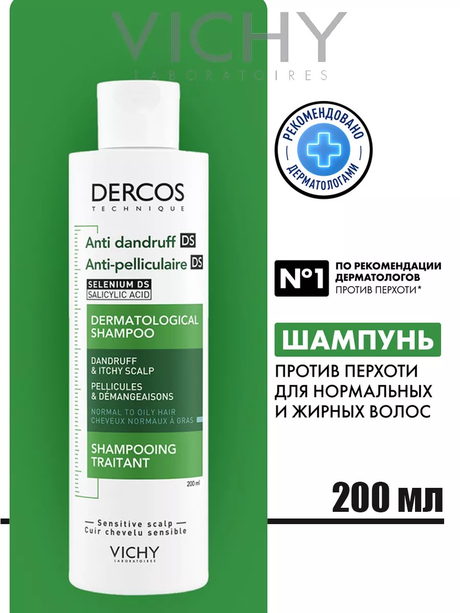 vichy Шампунь против перхоти для нормальных и жирных волос Dercos