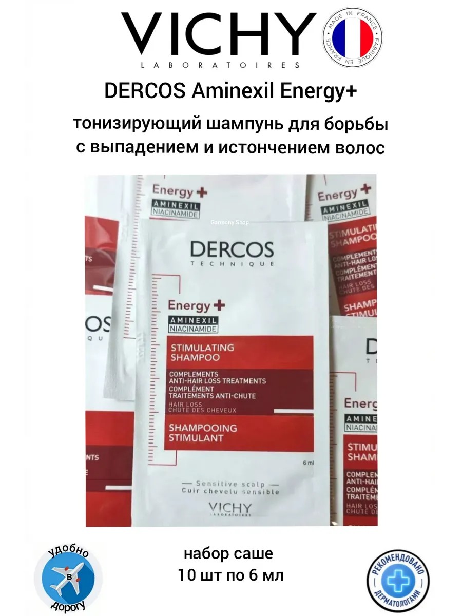 Dercos Aminexil Energy+ в набор входит 10 саше шампуня по 6 мл.