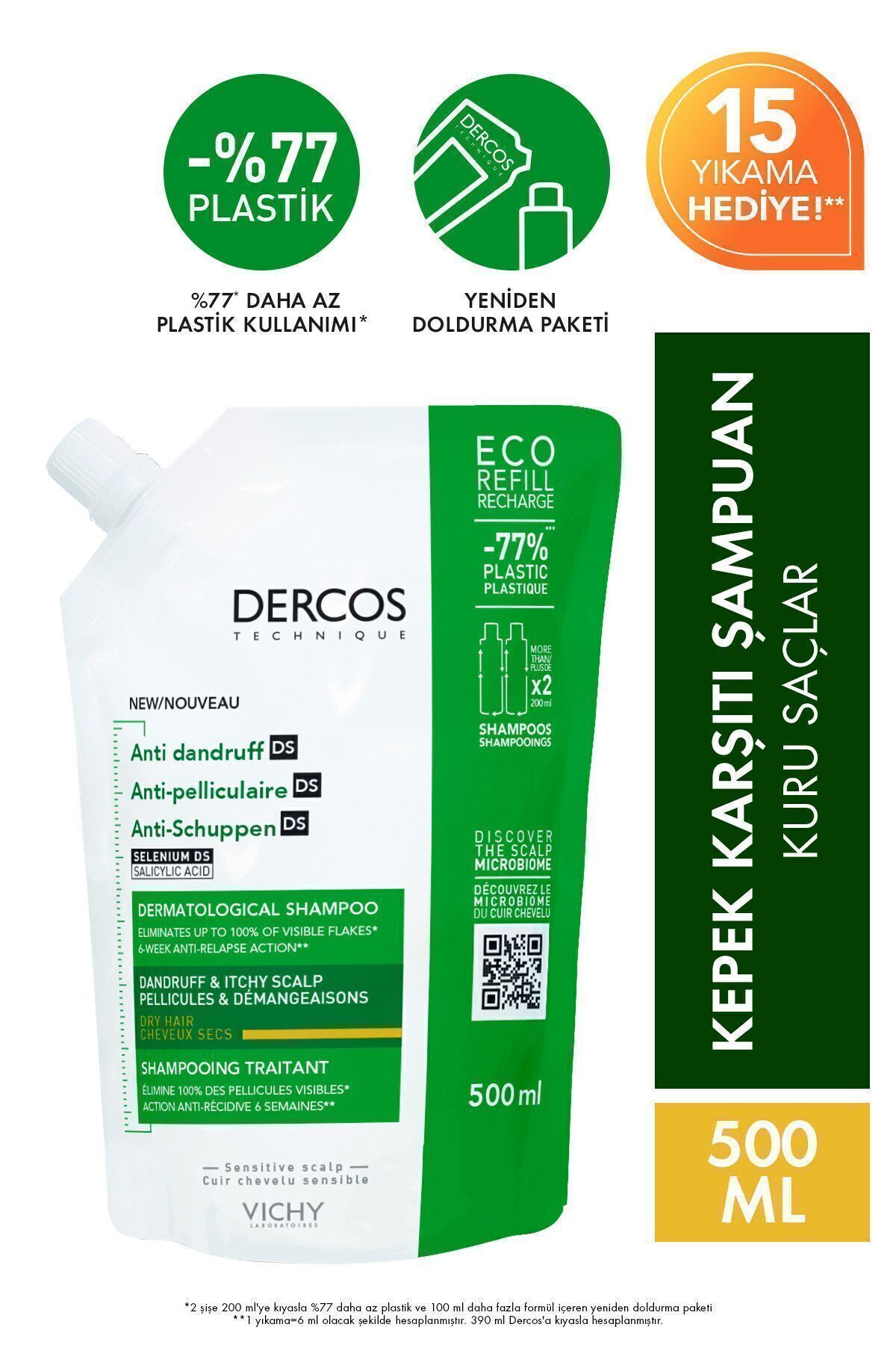 Dercos Anti-Dandruff Kepek Karsiti Bakim Sampuani, Kuru Saçlar , Yeniden Dolum Paketi 500 ml