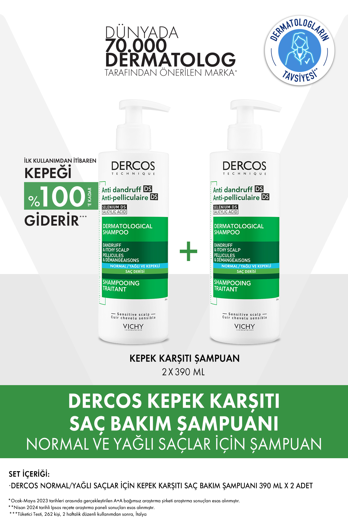 • Vichy Dercos Anti-Dandruff Normal ve Yagli Saçlar Için Kepege Karsi Etkili Bakim Sampuani 390 ml x2