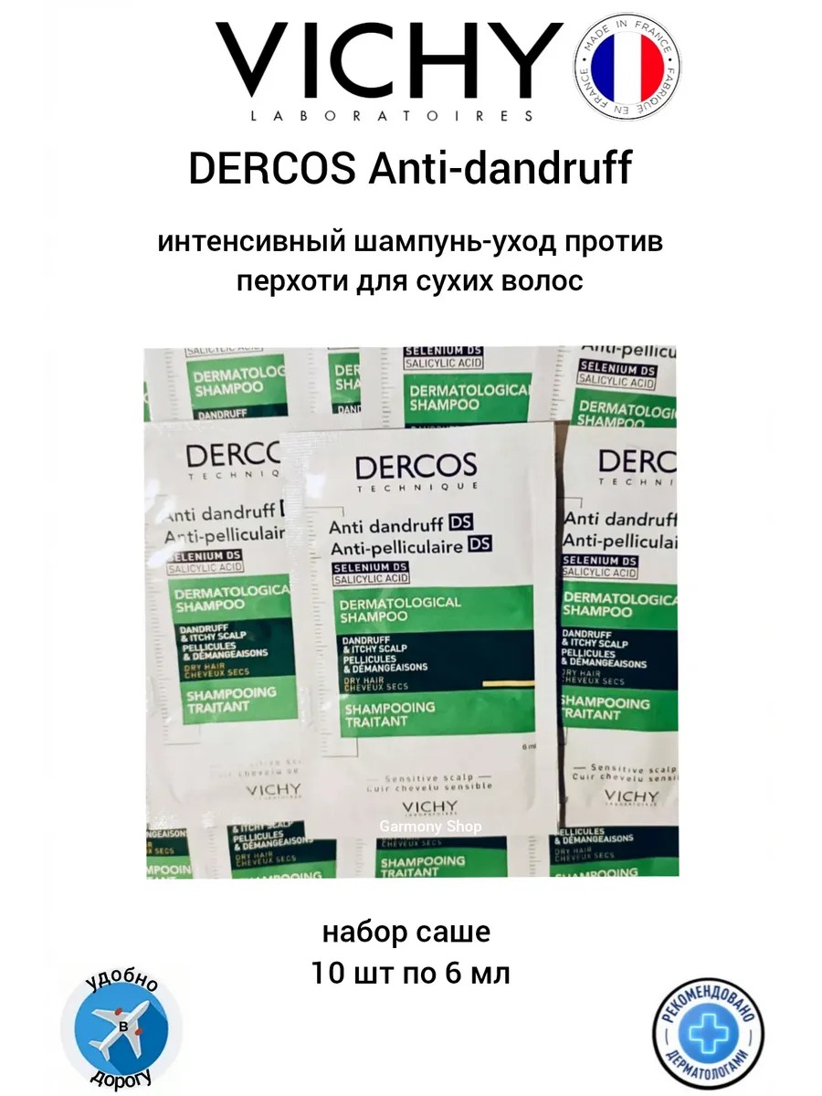 Шампунь Dercos Anti-dandruff против перхоти, в набор входит 10 саше шампуня по 6 мл.