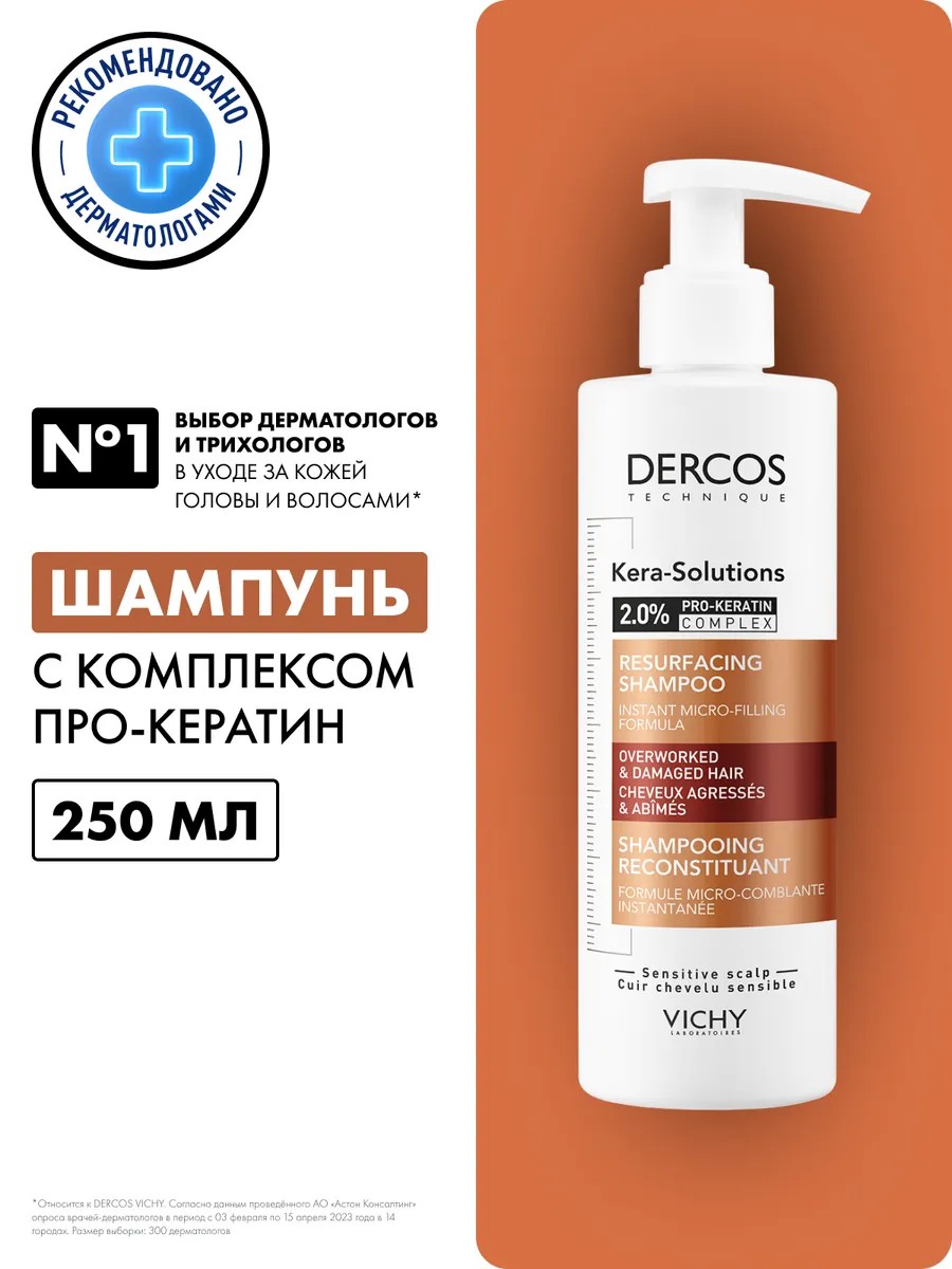 VICHY DERCOS KERA-SOLUTIONS Shampoo with Pro-Keratin Complex, 250 ml