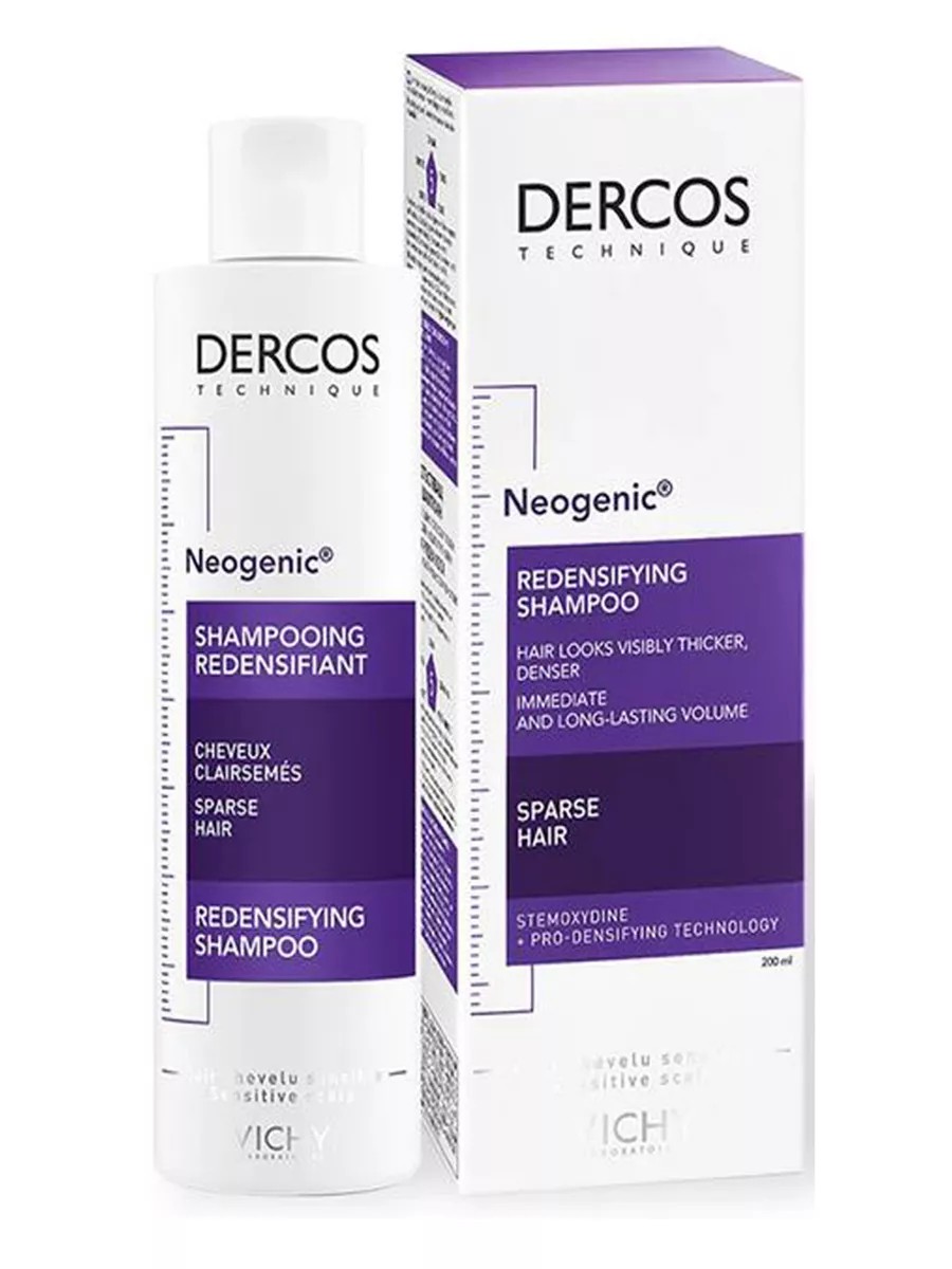Vichy Dercos Neogenic: Thickening Shampoo. If you dream of thick, strong, and healthy hair, consider Vichy Dercos Neogenic Thickening Shampoo. This unique product, made in Spain and part of the French brand Vichy, is specifically designed to address the problems of weakened and thinning hair. The Dercos line offers specialized products that not only combat hair loss but also promote new hair growth. This shampoo is suitable for all skin types, including sensitive skin, and is recommended for use from age 25. Its formula contains an innovative ingredient, stemoxidine, which activates dormant hair follicles, activating them into the growth phase. This significantly reduces translucency and increases hair density. The crystal-clear texture of Vichy Dercos Neogenic shampoo is based on a delicate cleansing base that preserves the natural pH level and hydrolipidic film of the skin and hair. After use, your hair becomes smoother and shinier, easier to comb and style. The shampoo adds volume and helps your hair retain its shape longer. Active ingredients such as citric and salicylic acids effectively exfoliate dead scalp cells, facilitating the growth of new hair. Vichy Thermal Spring Water saturates follicles with moisture and microelements, strengthening them and accelerating growth. Polyquaternium-30 adds smoothness and volume, providing lightweight hold. Using Vichy Dercos NeoGenique shampoo is simple: distribute a small amount through damp hair, lather, and gently massage into the scalp. After 2 minutes, rinse with warm water and enjoy the results. Paraben-free and hypoallergenic, it's the ideal choice for those who care about the health of their hair. Don't miss the opportunity to transform your hair with Vichy Dercos NeoGenique Thickening Shampoo. Try it today and see how effective it is!