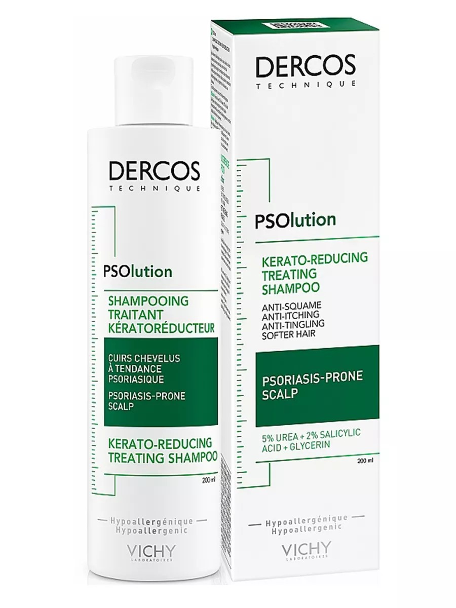 Шампунь Vichy Dercos PSOlution — это идеальное решение для людей, страдающих от псориаза и связанных с ним дискомфортных ощущений. Разработанный в Испании и представленный под известным французским брендом, этот кераторегулирующий продукт обеспечивает бережный уход за кожей головы, склонной к псориазу. Линия Dercos предлагает специализированные средства, направленные на решение проблем, связанных с выпадением волос и перхотью, что делает этот шампунь универсальным выбором для всех типов кожи. Псориаз — это хроническое заболевание, требующее особенного подхода. Шампунь Виши Деркос PSOlution сочетает в себе мощные противовоспалительные, увлажняющие и отшелушивающие компоненты, что обеспечивает эффективное ежедневное очищение кожи головы. Благодаря активным ингредиентам, таким как 5% мочевина, 2% салициловая кислота и глицерин, вы сможете забыть о чувстве стянутости, зуде и сухости.Мочевина обладает кератолитическим действием, размягчая роговой слой эпидермиса и способствуя устранению шелушения. Салициловая кислота эффективно отшелушивает омертвевшие клетки, стабилизируя уровень pH кожи. Глицерин, в свою очередь, притягивает и удерживает влагу, предотвращая ее испарение с поверхности. Все это делает шампунь идеальным для ежедневного применения, обеспечивая необходимый уход и защиту для чувствительной кожи головы.Гипоаллергенная формула продукта подходит для пользователей старше 20 лет и безопасна для частого использования. Нанесите небольшое количество шампуня на влажные волосы, мягко помассируйте кожу головы и оставьте на 2 минуты, затем смойте водой. В случае попадания в глаза, промойте их водой.Выбирая Виши Деркос кераторегулирующий шампунь, вы получаете не просто шампунь, а надежного помощника в борьбе с дискомфортом, вызванным псориазом. Устраните зуд и сухость, восстановите здоровье вашей кожи головы и наслаждайтесь ощущением свежести и комфорта каждый день.