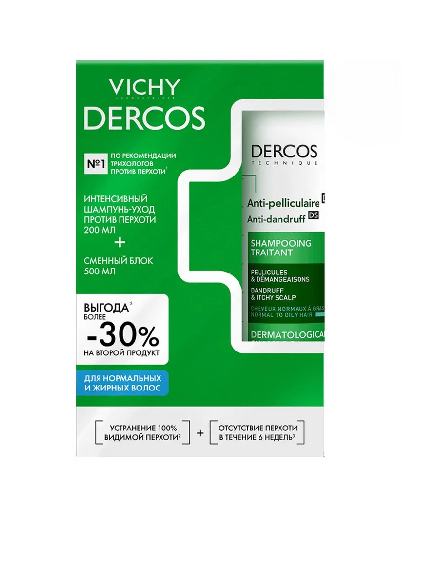 | Полное наименование товара | Набор Vichy Dercos, шампунь-уход против перхоти для нормальных и жирных волос 200 мл + рефил, 500 мл |