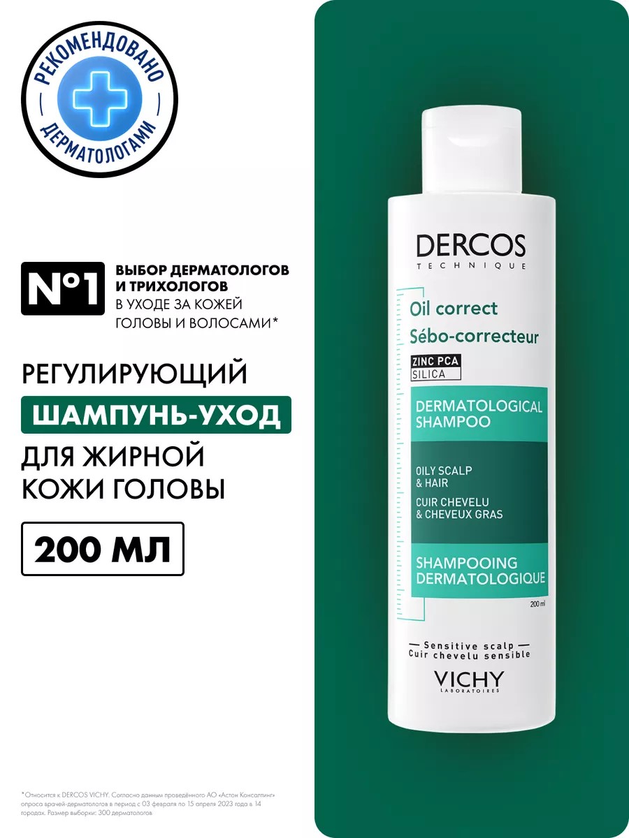 Increased sebum production leads to excess sebum production and scalp irritation. Hair appears dirty, dull, and quickly loses volume. This shampoo slows the spread of sebum and restores the scalp's natural balance. Hair is voluminous and easy to style. Silicone-free. Paraben-free. Ingredients: ANTI-SEBUM Complex, Salicylic Acid, Vichy Mineralizing Thermal Water. Directions: Apply a small amount of shampoo to damp hair, massage in, and rinse with water. Effectiveness: 80% of consumers confirmed increased hair volume. (Consumer test on 132 people, 3 weeks).